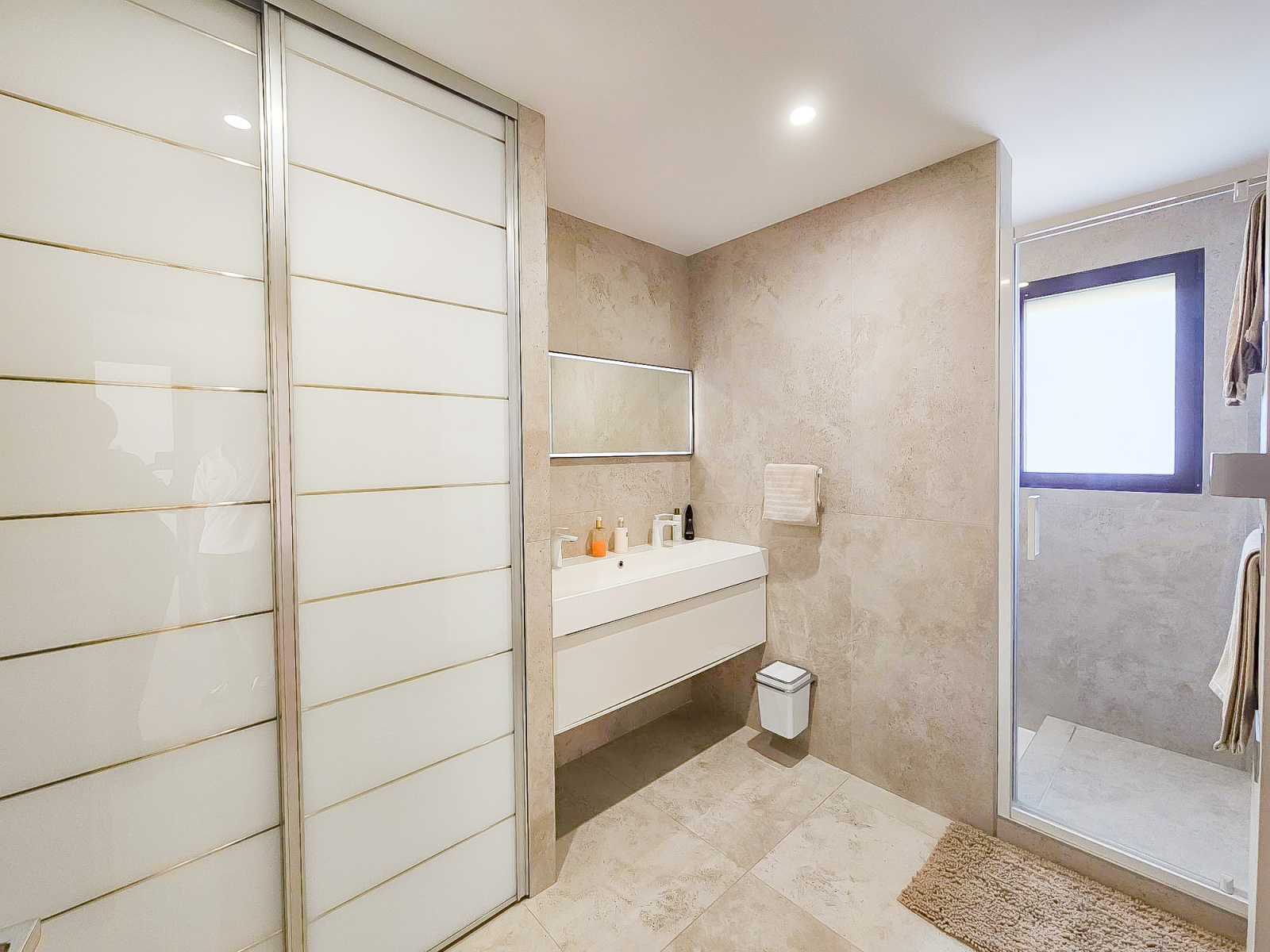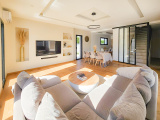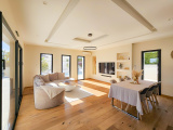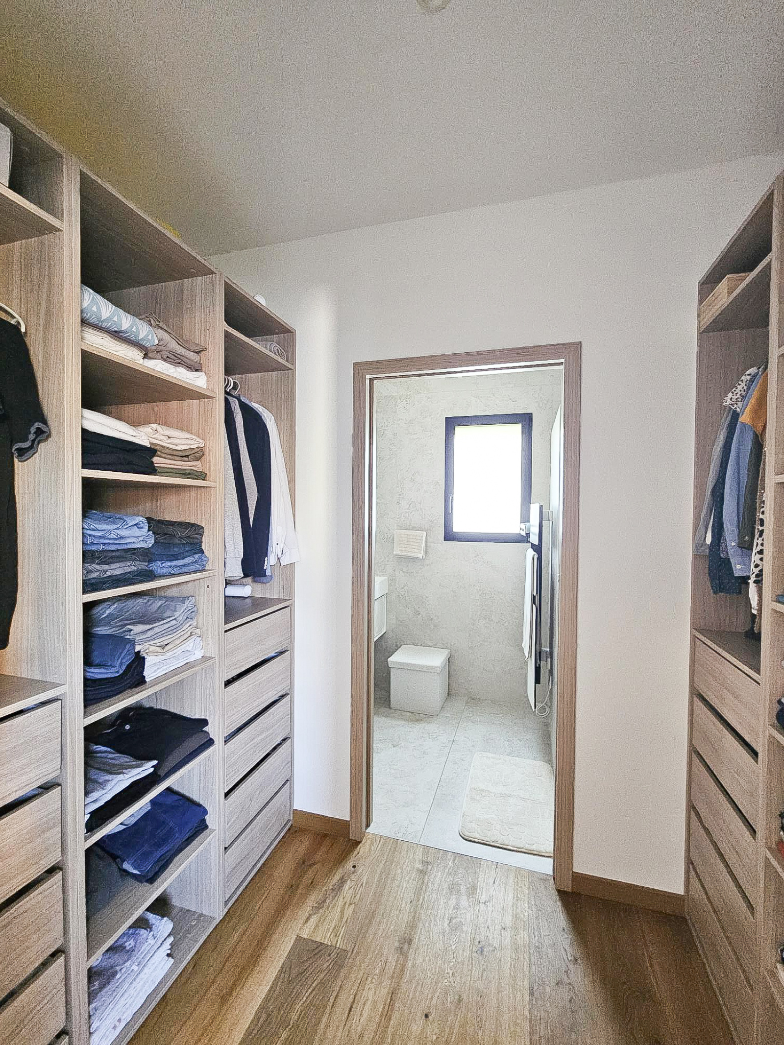 Une superbe pièce à vivre de 46m2 avec une belle hauteur de plafond, cuisine américaine entièrement équipée, une entrée de 12m2 aménagée de placards encastrés, buanderie, cellier......