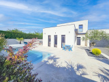 Elle offre 145 m2 habitable avec un garage carrelé et isolé de 21m2 sur un terrain paysagé de 520m2 agrémenté d'une piscine.