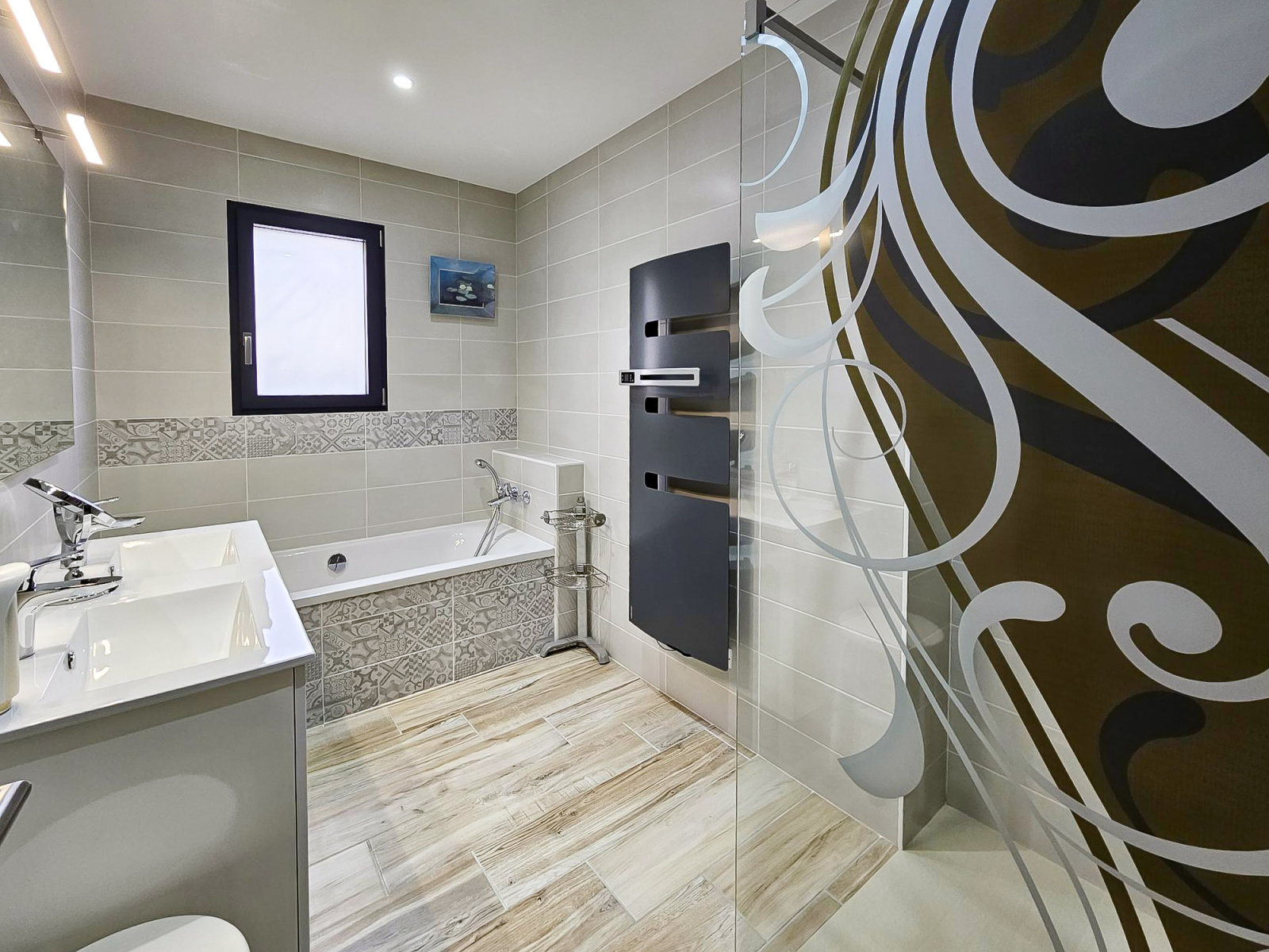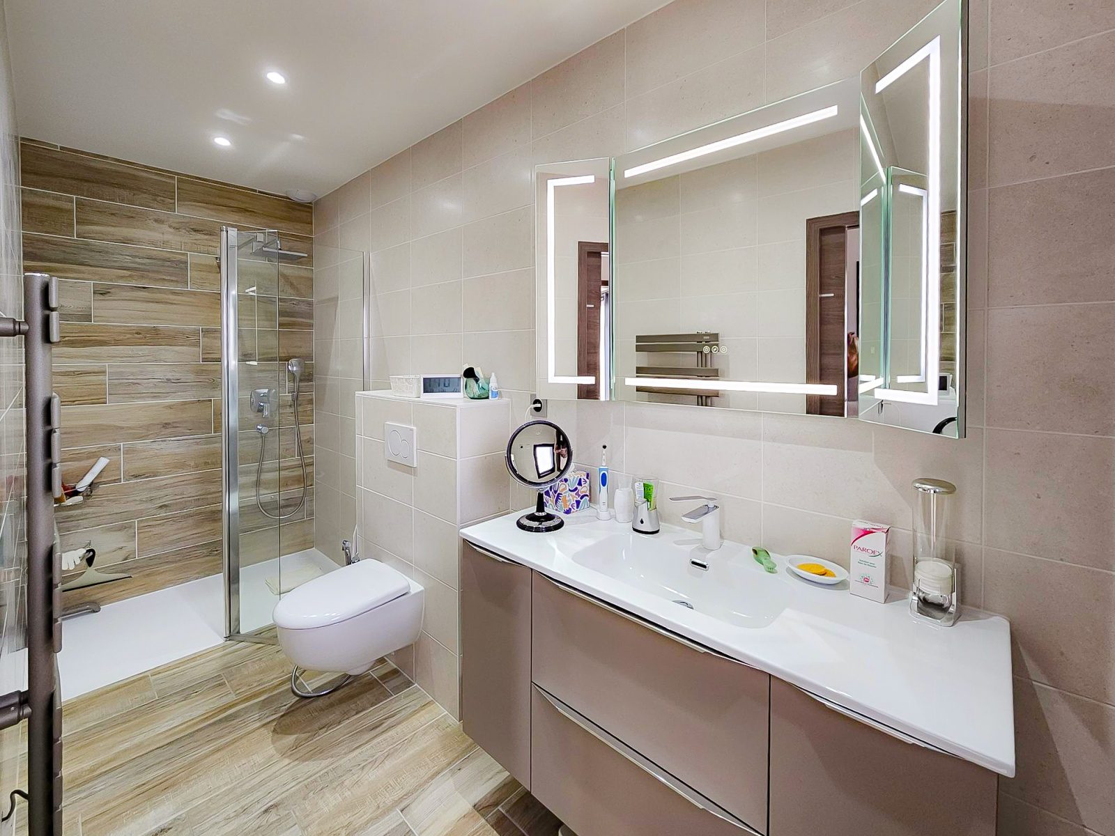 Elle offre 3 belles chambres de 2X11m2 toutes équipées de placards muraux et une suite parentale de 26m2 avec salle d'eau privée et dressing aménagé, également une salle de bain avec douche et baignoire et 2 toilettes.