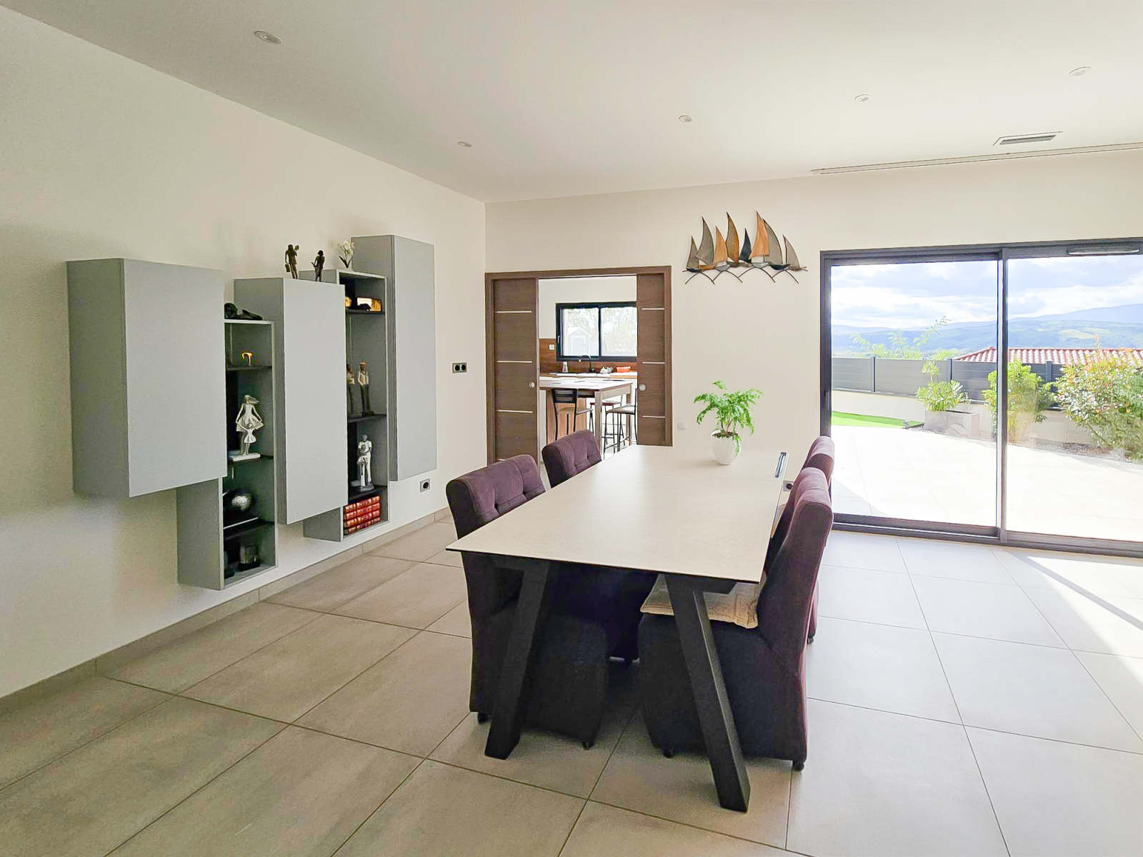 EN EXCLUSIVITE - Maison plain pied avec des prestations haut de gamme de 130m2 + garage isolé et carrelé de 25m2 sur les hauteurs offrant une splendide vue panoramique sur le Pilat, située dans un quartier calme et agréable à vivre (aucune nuisance) à 18 mn de Vienne et 45 mn de Lyon sur le côteau Roussillonnais, avec toutes les commodités à proximité et la gare à 1,5 Kms à pieds.