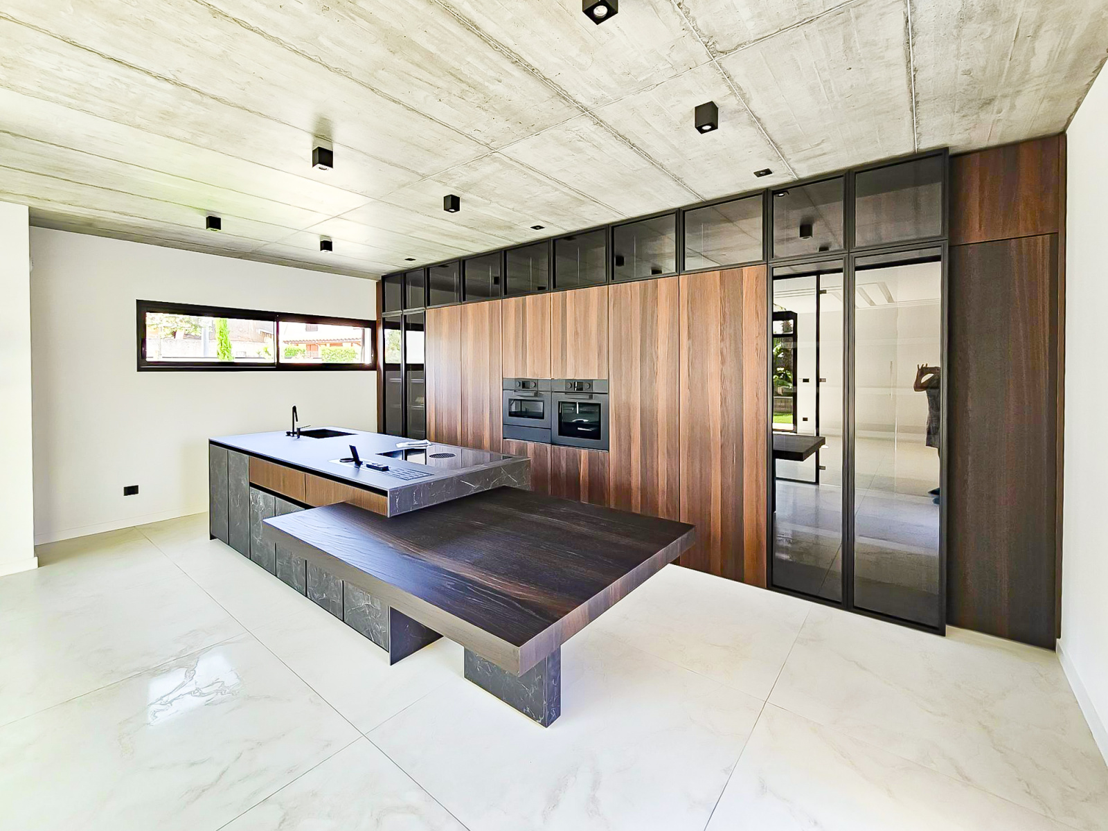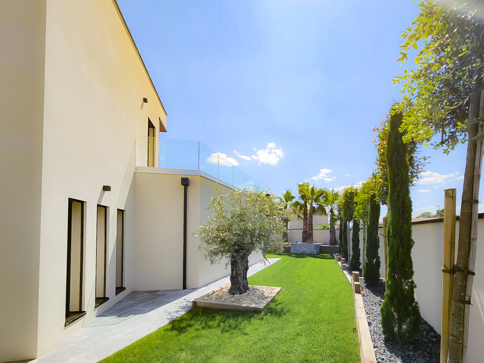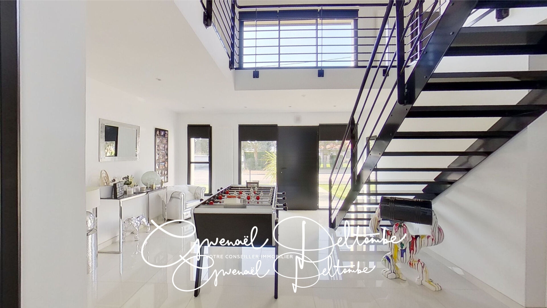 SOUS COMPROMIS - EN EXCLUSIVITE - Située dans un village prisé du Sud de vienne, cette élégante et authentique maison contemporaine d’exception d’env. 149m2 entièrement domotisée avec une technologie de pointe, des jeux de lumières intérieur et extérieur, située dans un environnement résidentiel et dynamique, cette maison bénéficie d'un emplacement privilégié, à proximité de toutes les commodités et des transports en commun, à 18mn du centre de Vienne, 38mn de Lyon et à 5 mn d’une gare. Elle offre ainsi un parfait équilibre entre tranquillité et vie urbaine. L'extérieur est un véritable havre de paix, avec ses palmiers majestueux, son jardin de 511m2 avec arrosage automatique, brumisateurs, Jacuzzi 5 places promettant des moments de fraîcheur et de plaisir sous le soleil du sud de Vienne. Véritable invitation à la détente et à l'évasion, cette propriété évoque l'atmosphère sereine des vacances tropicales. Elle propose des Volumes spectaculaires avec une hauteur cathédrale de 6m20, une façade vitrée de 5m80 dans la pièce à vivre de 66m2 comprenant une cuisine américaine Premium « CASABELLA » entièrement équipée avec des prestations haut de gamme, une alliance de bois, de matériaux nobles et d'une verriere lui apportant toute son élégance avec la possibilité de pouvoir la fermer selon vos désirs. Egalement une entrée aménagée, une porte invisible ouvrant une suite parentale au RDC d’env. 20m2, salle d’eau privée et dressing avec portes en verre fumé. Un escalier entièrement vitré montant au 1er étage sur une passerelle en verre menant à 2 chambres de 18m2 avec chacune leur salle d’eau, leur coin dressing et leurs superbes terrasses avec vue sur le jardin exotique et le pilat.