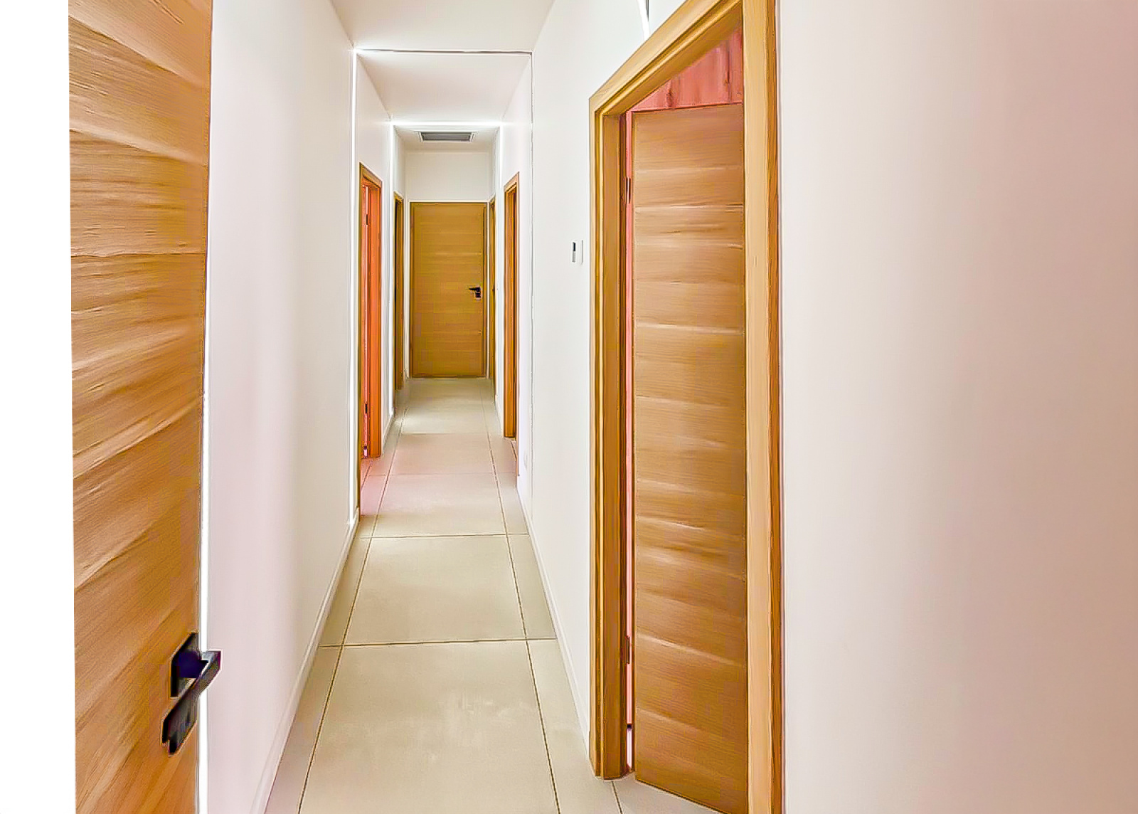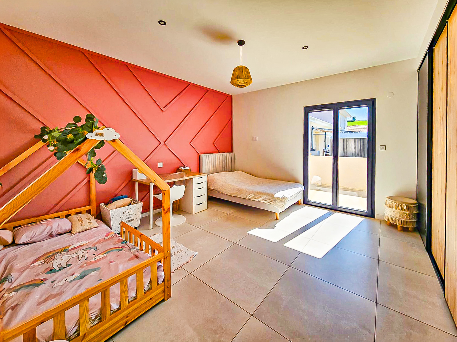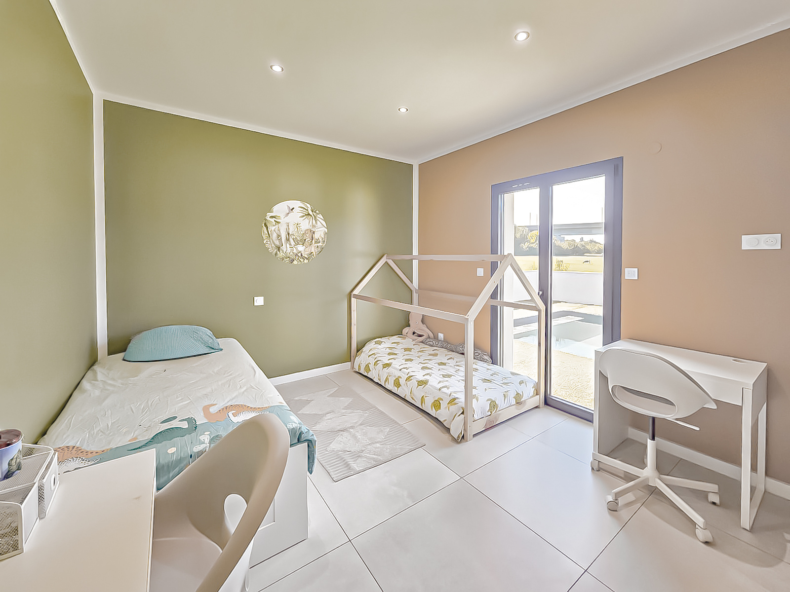 Elle offre 5 chambres dont une suite parentale de 19m2 avec salle d'eau, dressing et 4 chambres de 14 + 11 + 9 et 18m2 toutes équipées de placards muraux, avec salle de bain et 2 toilettes indépendants.