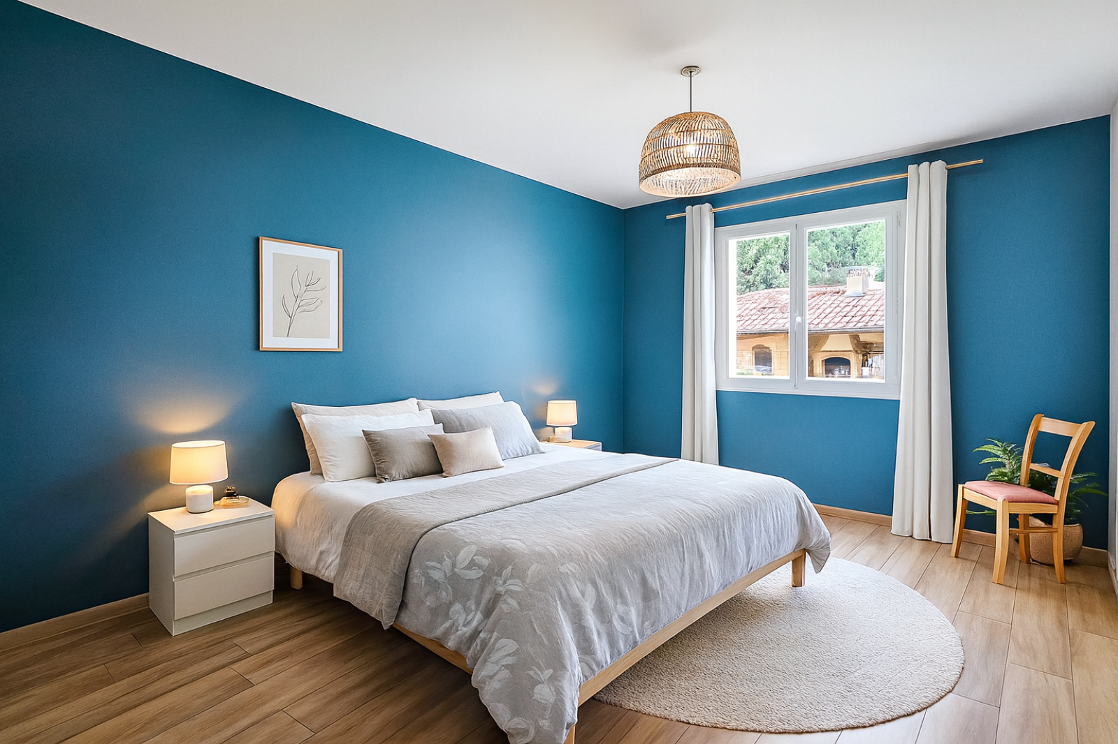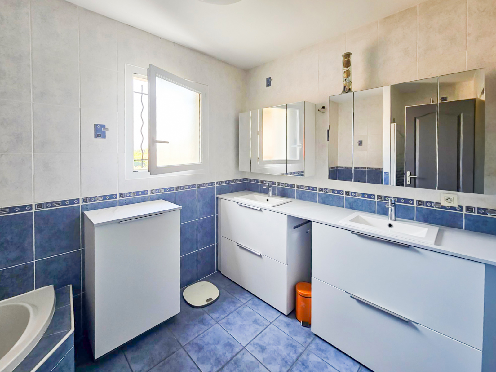 Elle offre 5 chambres dont une suite parentale d'env. 20m2 avec salle d'eau privée et coin dressing + 4 chambres de 12m2 avec salle de bain familiale, également un bureau.