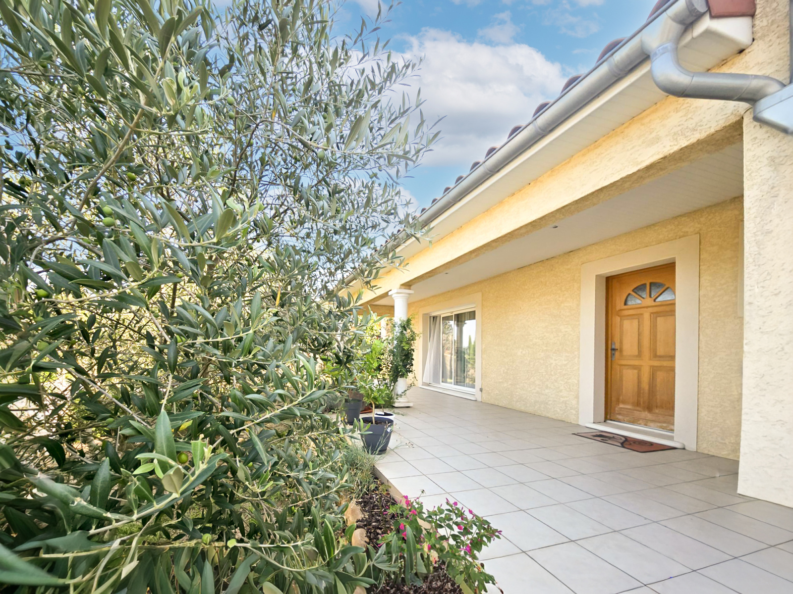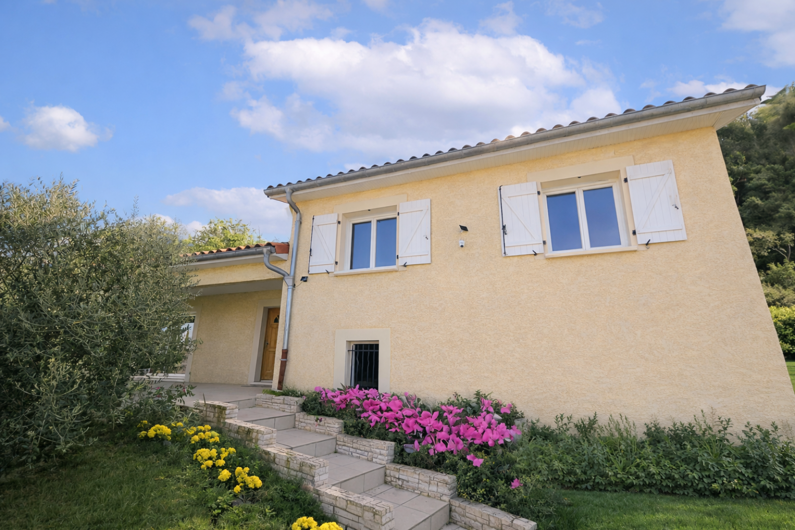 Une pièce à vivre de 63m2 avec cuisine américaine récente entièrement équipée, de grande baie vitrée s'ouvrant sur 2 grandes terrasses dont une avec vue sur le Pilat et la seconde sur le jardin paysagé de fleurs , d'oliviers avec un coin barbecue, four à pizza.....