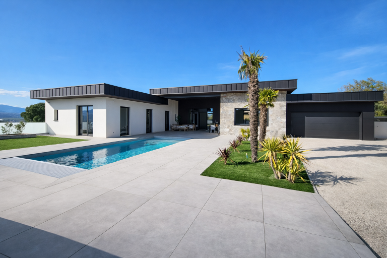 Les extérieurs somptueusement aménagés avec une végétation arrosée automatiquement, mis en valeur par un éclairage indirecte, système de led en lumière indirecte sur la maison et pool house, à l'intérieur également. Palmiers, Oliviers et diverses plantes exotiques ajoutent une ambiance du sud à l'harmonie du site, on ne pouvait rêver d'un plus gracieux écrin pour un si beau bijoux.