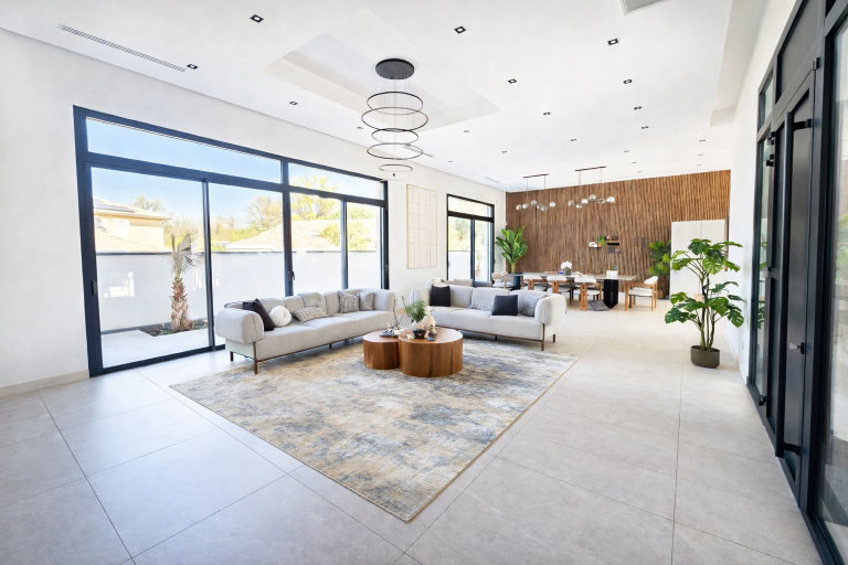 Une pièce à vivre de 100m2 sublimée par une belle hauteur de plafond, de grandes baies vitrées faisant apparaitre une vue panoramique à couper le souffle sur la piscine et sur le Pilat comme un tableau grandeur nature se modifiant suivant la saison et le temps, s’ouvrant sur une spacieuse terrasse de plus de 100m2 où vous pourrez apprécier la vue et la piscine chauffée.