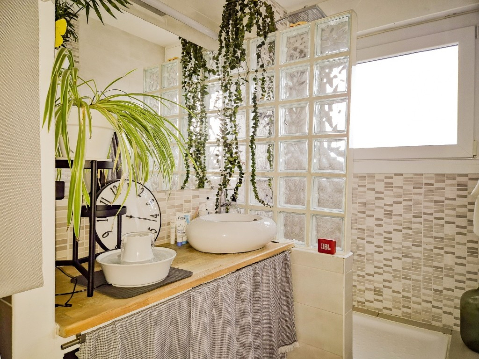 Belle pièce de vie de 47 m2 avec cuisine américaine équipée, 2 grandes chambres, un dressing, une salle d'eau et un wc séparé.