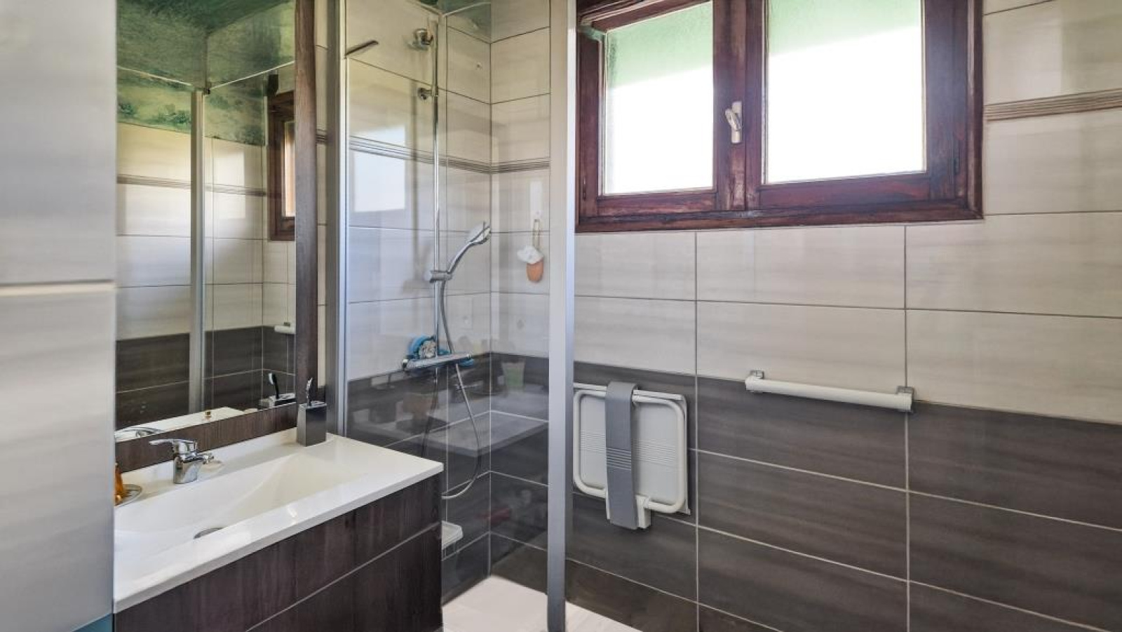 ETAGE : cuisine, séjour ouvert sur salon, 3 chambres, salle d'eau et wc séparé, grande terrasse d'environ 40 m2.