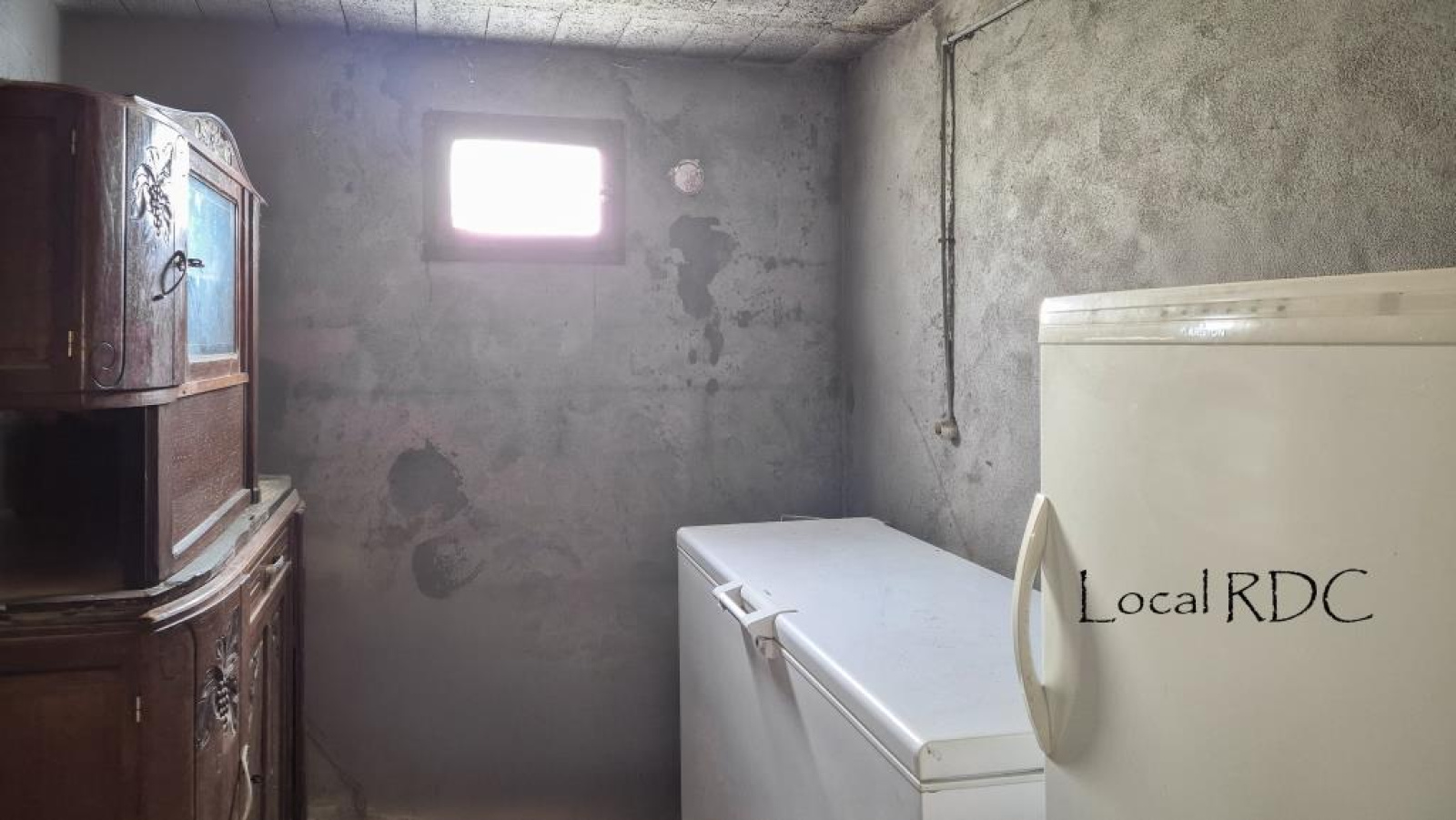 RDJ : garage, local, atelier, cave, cuisine, 2 pièces et local buanderie.