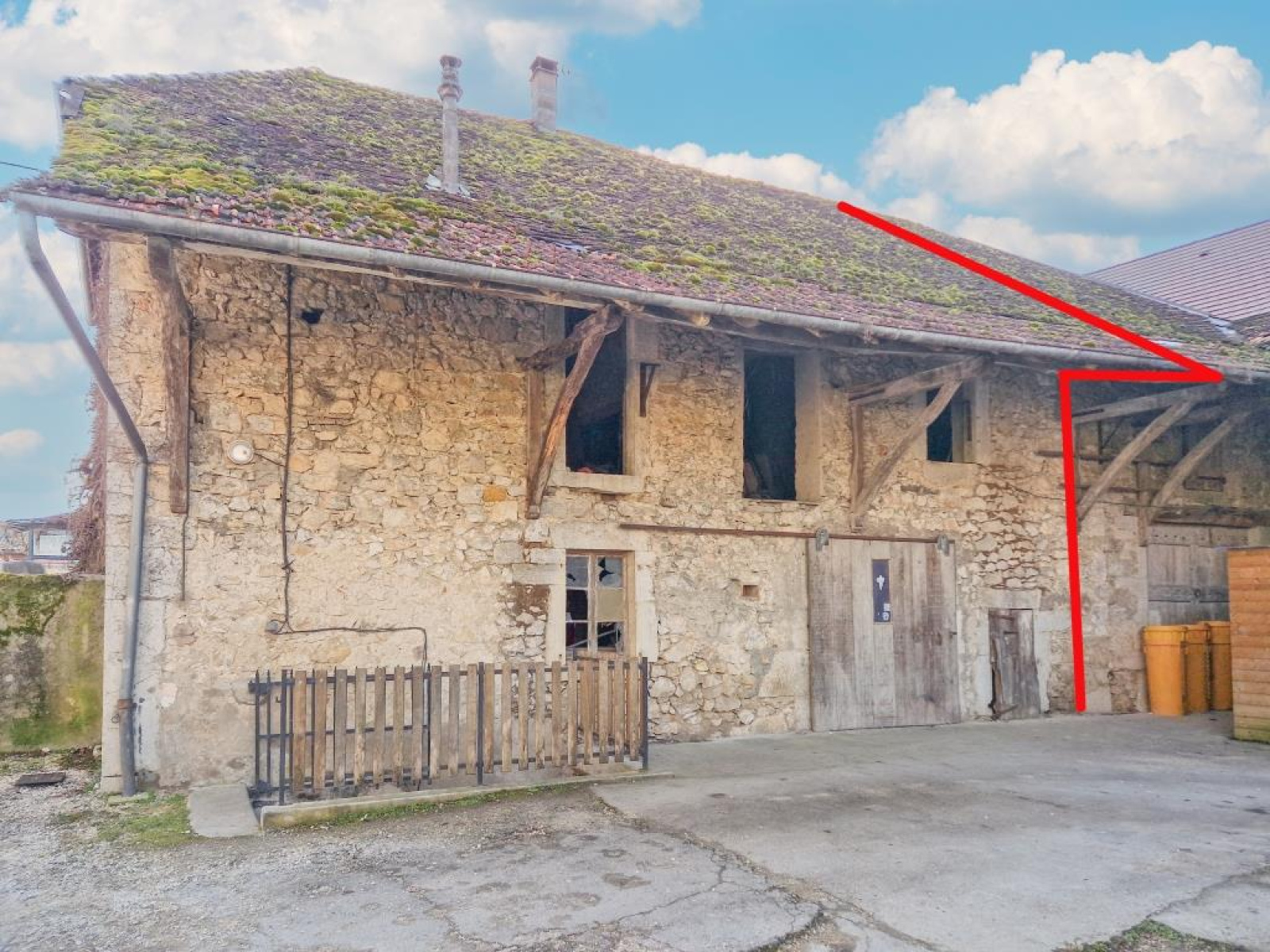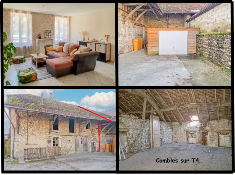 - Grange comportant un garage + un atelier en RDC + combles aménageables sur 2 niveaux supplémentaires + une cave en sous-sol.