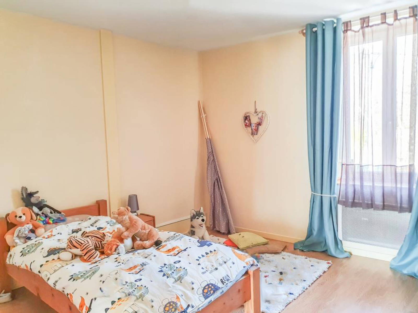 - Pièce de vie avec cuisine ouverte, salle de bain, wc séparé, 3 chambres.