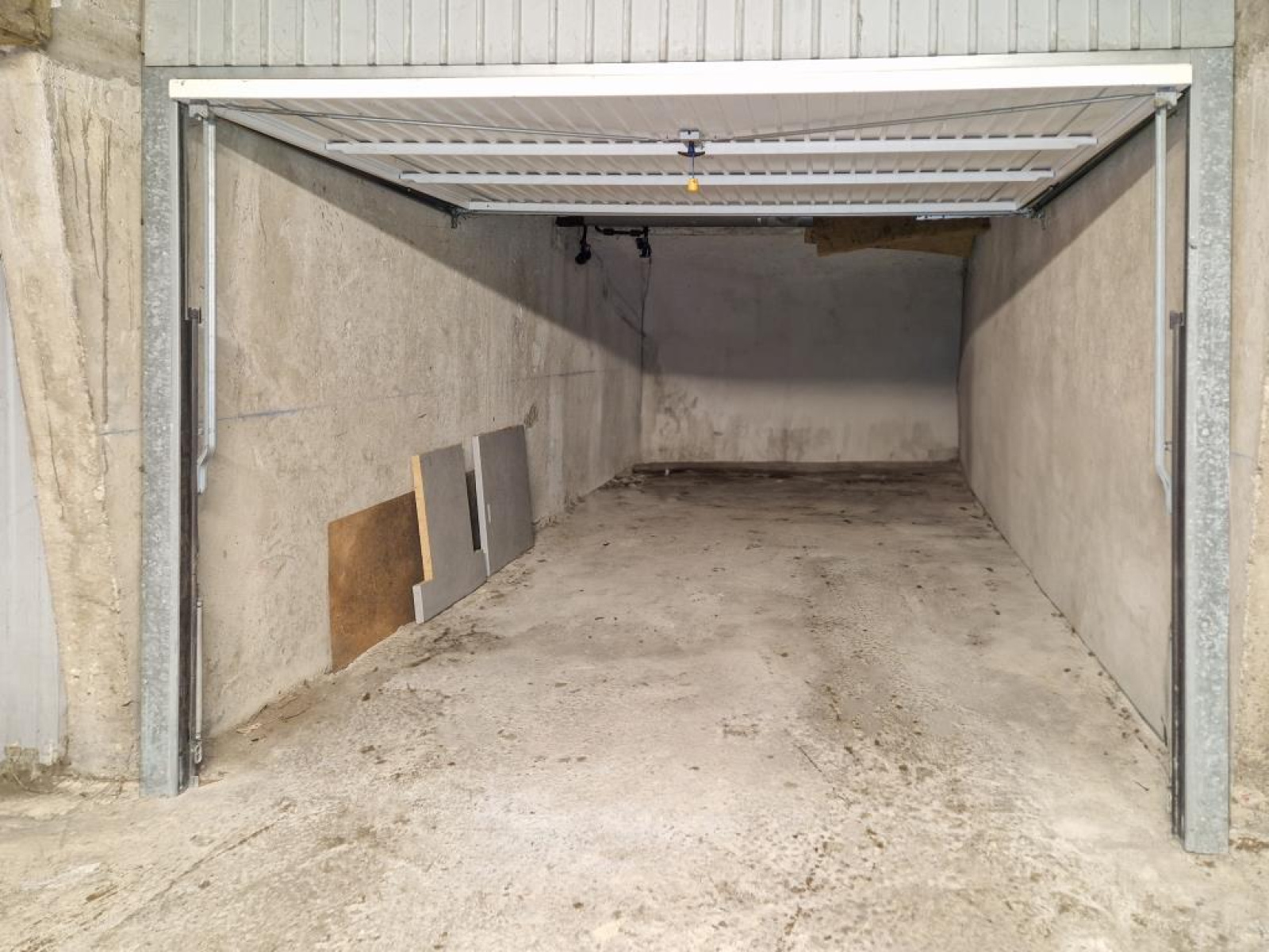 Pièce de vie avec cuisine équipée, chambre, salle d'eau, wc séparé, buanderie, balcon, cave, parking privé, garage.