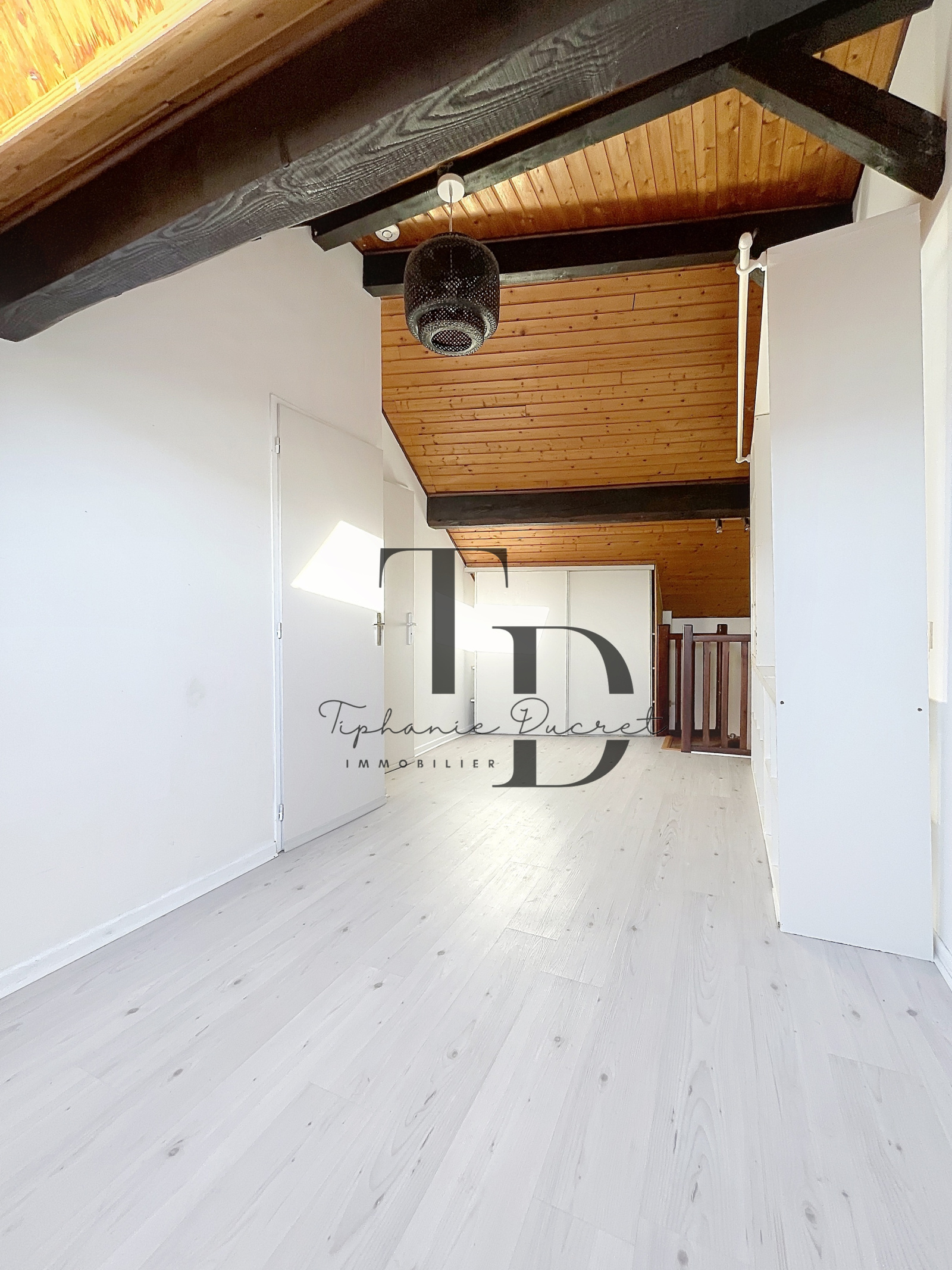Au rez-de-chaussée, vous profiterez d'un séjour avec cuisine équipée ouvrant sur un balcon, tandis qu'à l'étage se trouve une chambre avec espace bureau/chambre d'ami modulable et une salle d'eau avec WC refaite à neuf.