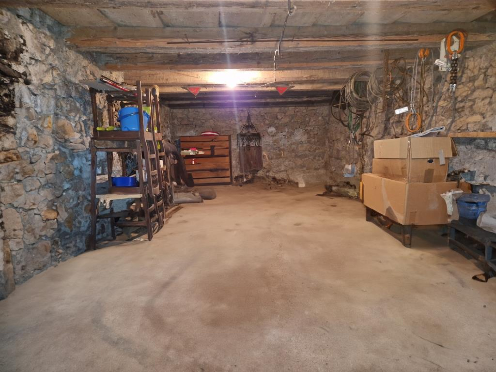 Chauffage central au fioul sur radiateurs, double vitrage, pas ou peu d'isolation thermique, assainissement individuel à remettre aux normes cuve de récupération des eaux de pluie de 5000 litres.