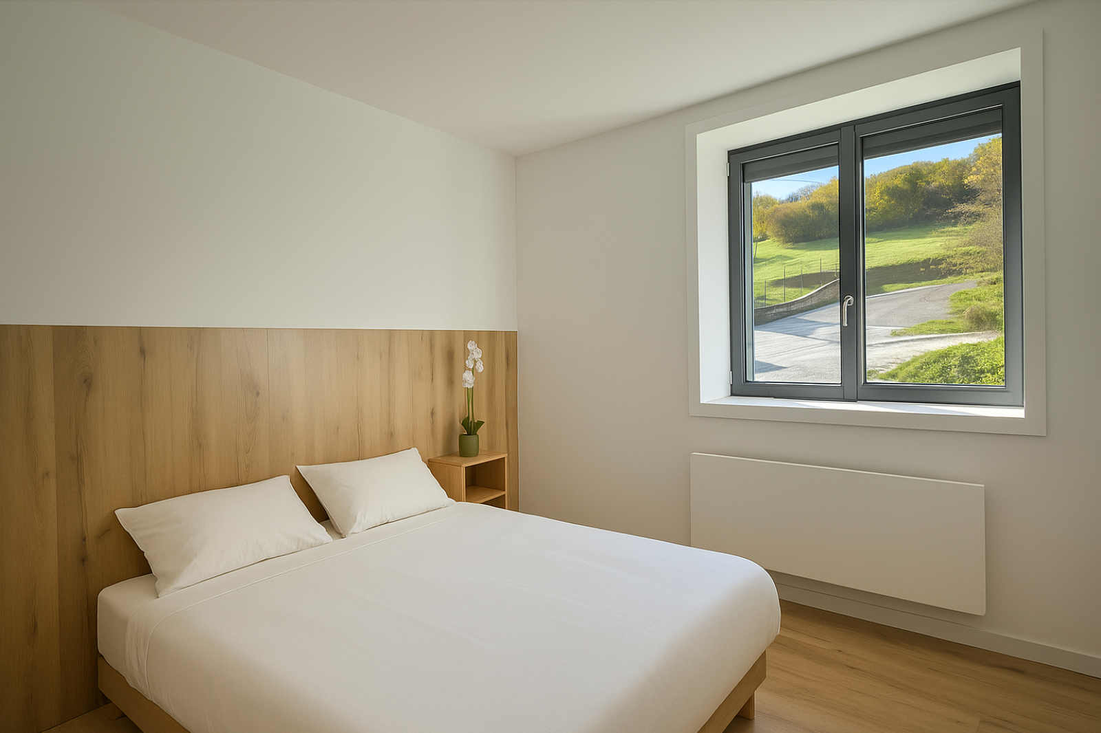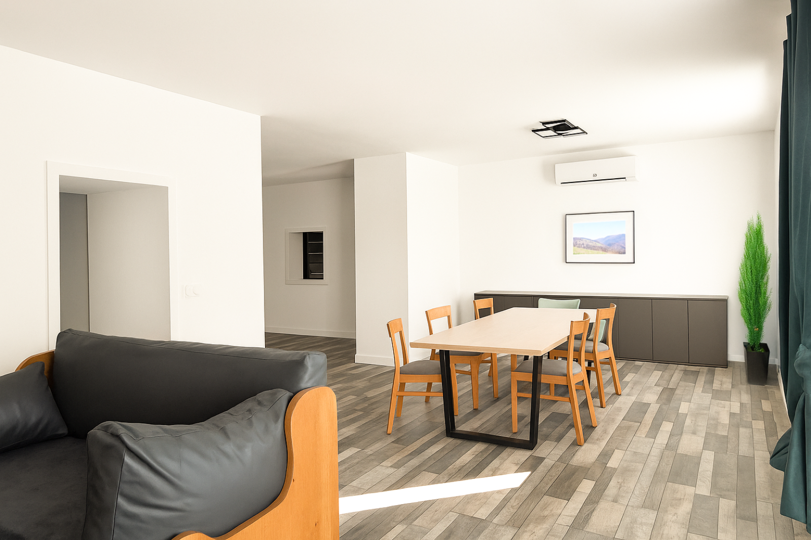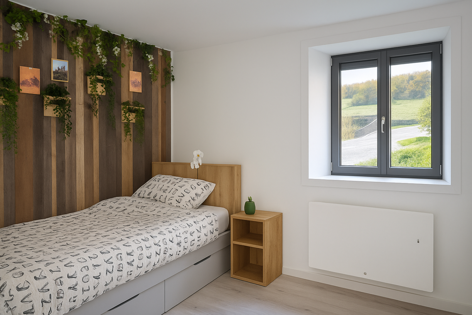 Chauffage PAC + convecteurs (2023), isolation par les murs et par le toit (2023), menuiseries alu double vitrage (2022), volets roulants motorisés (2022), cumulus thermodynamique (2023), assainissement collectif.