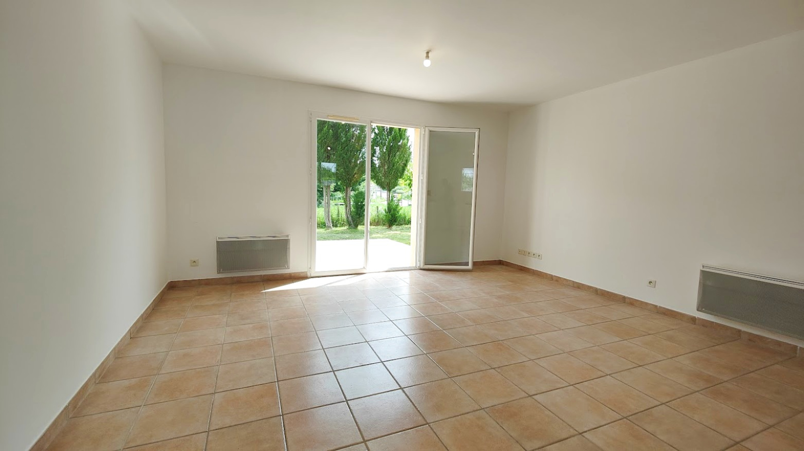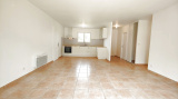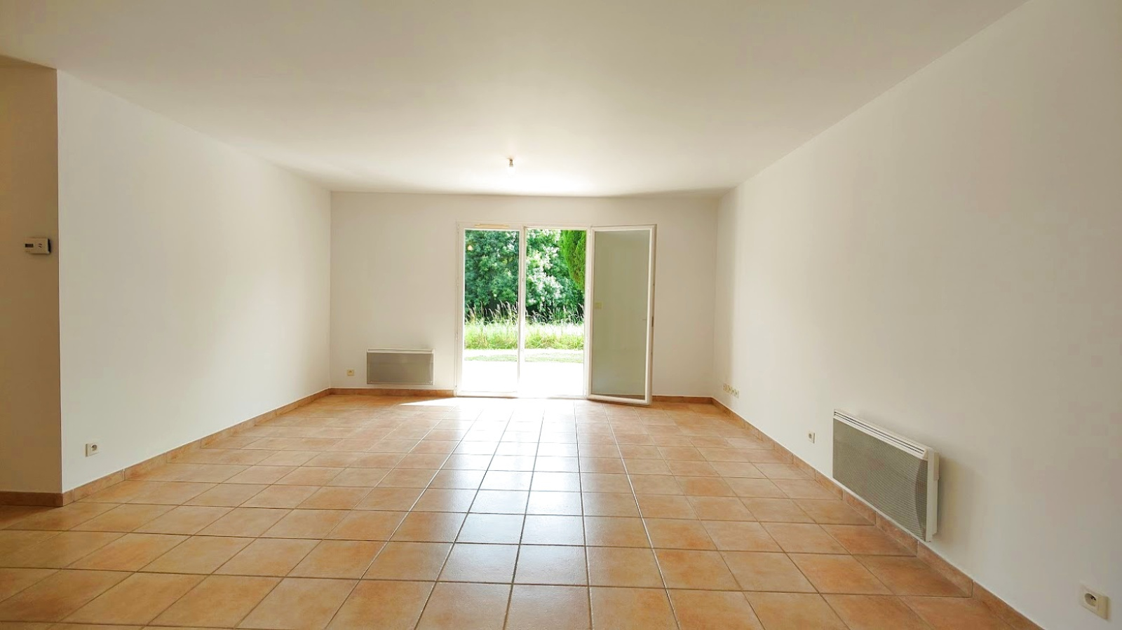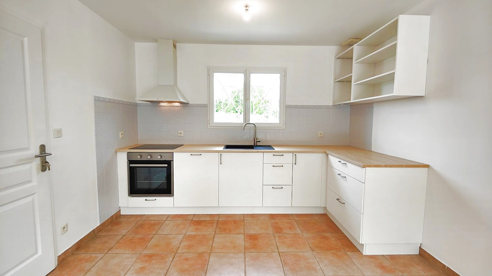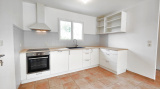 L'entrée vous mène à une cuisine neuve, installée pour la vente, ouverte sur un salon et une salle à manger lumineuse, qui s'ouvre sur une belle terrasse.