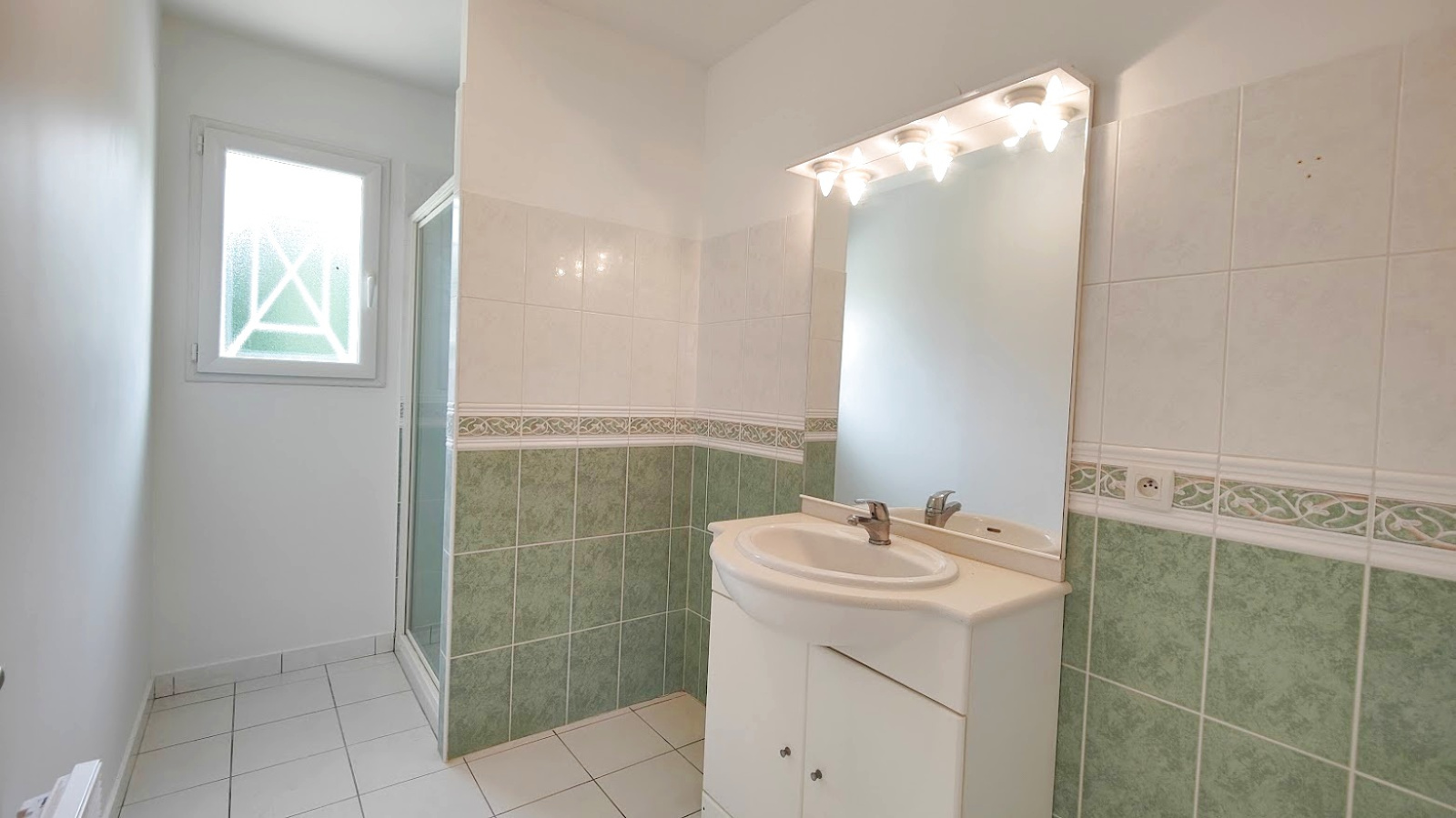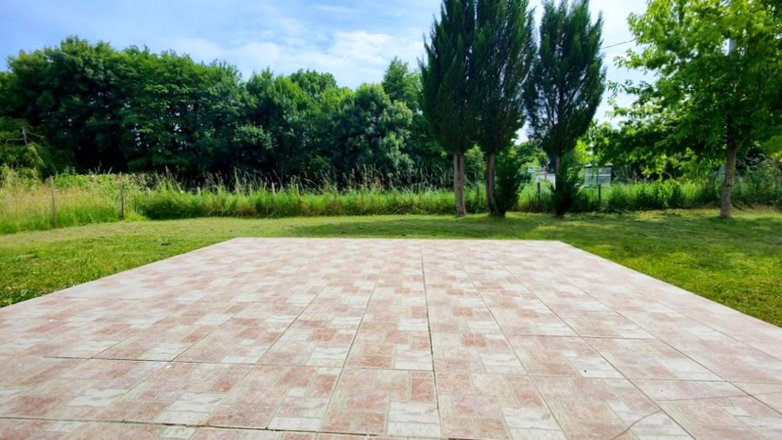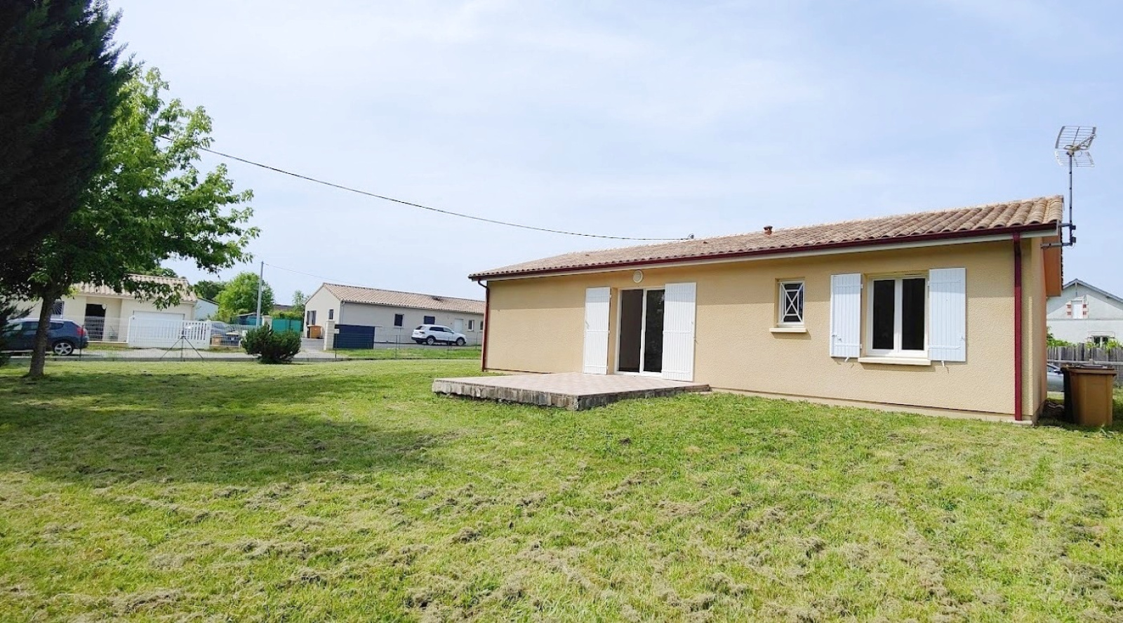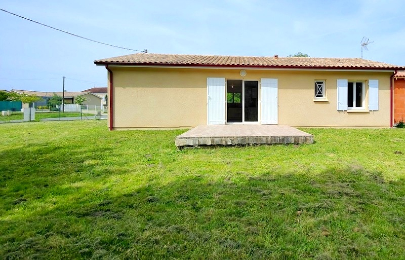 L'entrée vous mène à une cuisine neuve, installée pour la vente, ouverte sur un salon et une salle à manger lumineuse, qui s'ouvre sur une belle terrasse.