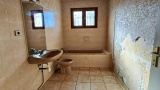 Elle se compose d’une entrée, d’un salon, d’une salle à manger, d’une cuisine séparée, de quatre chambres, d’une salle de bains avec WC ainsi que d’un garage attenant de 18 m².