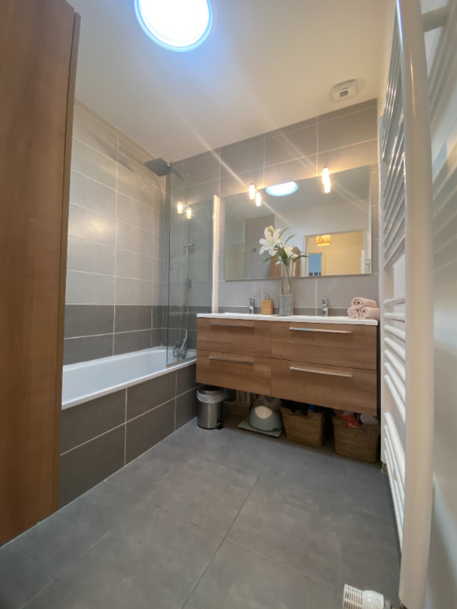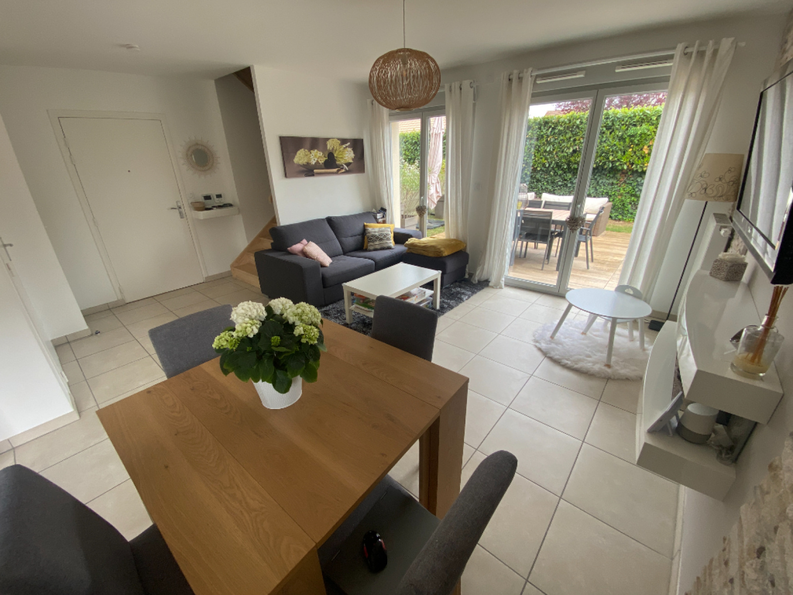 * En exclusivité * Kate Brown vous présente au coeur de ville, de Chassieu ce superbe duplex de 68,72 m2 construit en 2018 par le groupe Prom-S et vendu avec DEUX garages fermés en sous-sol ! 80 lots dont 36 d'habitations pour cette petite copro arborée et entretenue de 7 petites résidences Ce duplex est tout comme une petite maison charmante avec son jardin de 80 m2 , sans réel vis-à-vis grâce à la végétation ! Un espace de détente super adorable avec sa grande terrasse ! Aucun travaux à prévoir ! Au rez-de-chaussée, la jolie pièce de vie exposée Est-Nord-Ouest de 28,28 m2 ouverte sur la terrasse et le jardin avec la cheminée électrique 1600w pour l'effet déco cocon ! La cuisine Aviva de 2018 est toute équipée d'électroménagers Bosch et surtout offre de très nombreux rangements Le grand toilette/buanderie complète le RDC en offrant un espace aménagé pour les machines et beaucoup de rangement : manteau, réserves, etc.. A l'étage la chambre parentale de 14,10m2 est superbe, lumineuse, exposée Est et avec un grand placard mural La 2ème chambre de 10,29 m2 est également exposée Est avec grand placard mural La salle de bain de 4 m2 avec ses deux vasques + meuble de rangement, la colonne et la baignoire profite d'un puit de lumière naturelle ! Les toilettes sont séparés de la SDB Vous profiterez d'un 3ème grand placard mural dans le dégagement Le duplex est très bien conçu et profite d'un volume et de rangement plus intéressant que ses homologues dans la résidence Le duplex est vendu avec deux garages fermés en sous-sol Chauffage gaz de ville individuel Chappee Contactez moi pour +++ d'informations au 06.32.90.30.94 ! Kate