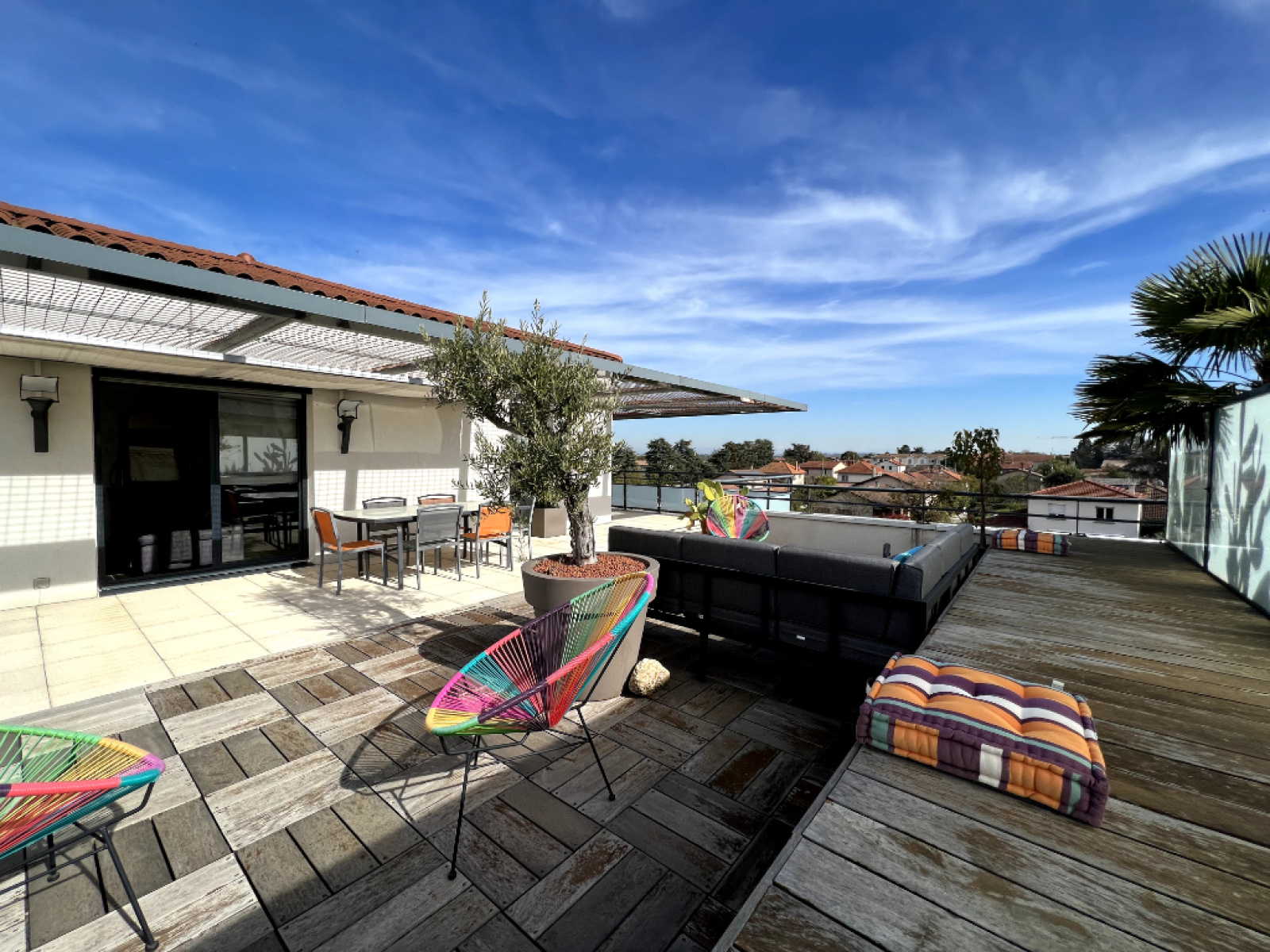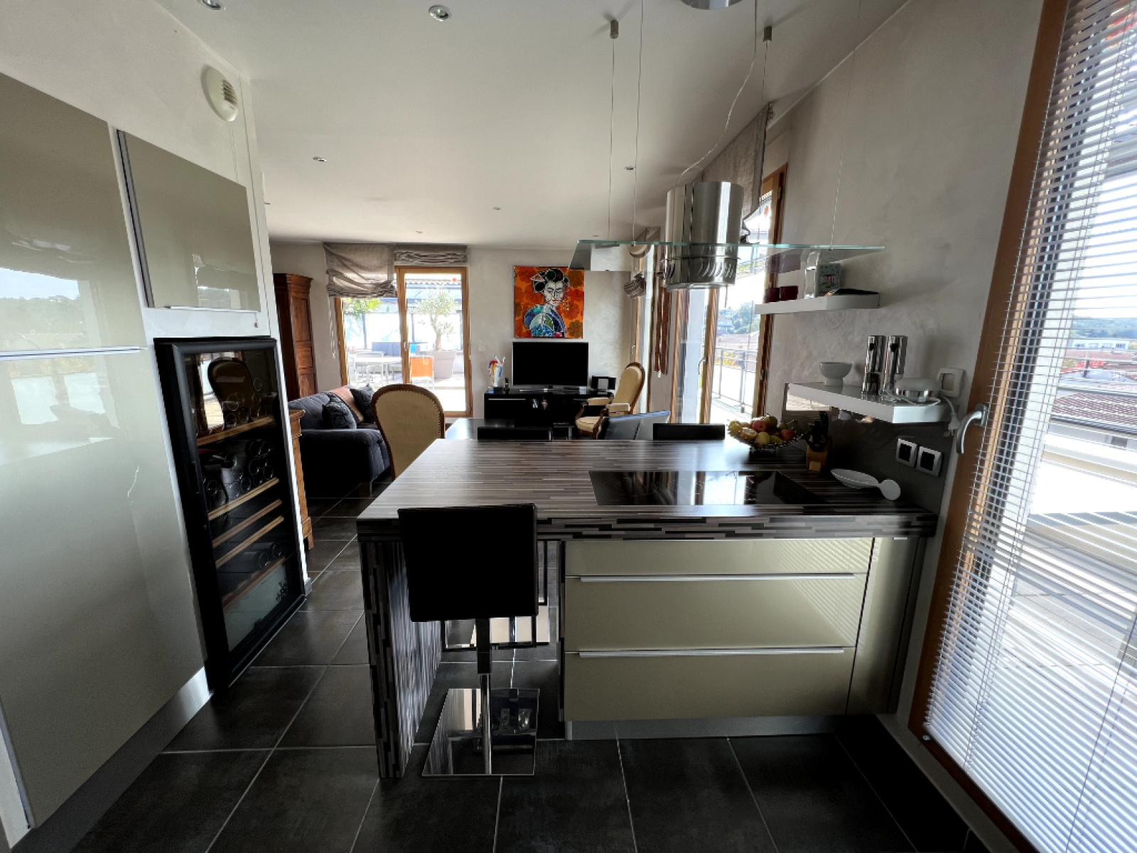 *** VENDU AU PRIX *** En Exclusivité avec Kate Brown Au coeur de Saint Bonnet de Mure, dans une résidence construite par le constructeur haut de gamme la SIER en 2010, Kate Brown vous présente ce superbe appartement toit terrasse de 84 m2 avec sa terrasse exceptionnelle de 110,90 m2 ! L'appartement est donc au dernier étage de cet immeuble de 2010 de 3 étages Exposition magique Est-Sud-Ouest pour tout l'appartement et notamment la pièce de vie avec vue sur Lyon à l'Ouest et sur le parc rue JF Ligonnet et les environs côté Est à noter : d'origine un T4 transformé en T3, vous pourrez aisément le convertir en T4 à nouveau (cf la salle à manger actuelle) Copropriété sans logements sociaux - que des propriétaires physiques ! L'appartement est vendu avec deux garages en sous-sol dont un plus large aux normes PMR et avec une cave ! L'appartement de 84,13 m2 se compose de l'entrée desservant d'un côté l'espace nuit et de l'autre la magnifique pièce de vie de + de 50 m2 ! Il est tout équipé chez Mobalpa de la cuisine, à la bibliothèque sur mesure, aux portes et aménagements de placards, vous ne serez pas déçu par la qualité des prestations de cet appartement ! La pièce de vie est tout simplement baignée de lumière et domine tous les environs avec une vue exceptionnelle dans l'Est-Lyonnais ! Tout le confort du coeur de ville Murois sans les nuisances et dans un cadre qui ne changera pas ! La cuisine conçue par Mobalpa restera équipée d'un four vapeur, d'un four pyrolyse, d'une plaque de cuisson induction, de la hotte, d'un réfrigérateur intégré et d'un congélateur intégré Elle est dinatoire avec son îlot central de cuisson et elle s'ouvre directement sur la terrasse La terrasse ne vous offre que des possibilités et un superbe espace détente... elle est équipée de lumières extérieurs Pradier, d'un store motorisé, de prises électriques, d'un point d'eau,.. Venez vous aussi profiter de votre petit coin de paradis ! Côté nuit, les deux chambres de 12,49 m2 et de 10,67 m2 vous raviront avec le parquet véritable en châtaignier et les grands placards aménagés par Mobalpa La salle d'eau aménagée de 3,74 m2 avec sa douche, sa vasque et les rangements Mobalpa, le sèche-serviette électrique et la fenêtre ! Les toilettes sont séparés, suspendus et avec un lave-mains Deux garages dont un aux normes PMR vous offrent stationnement et rangements La cave saine de 1,30 m2 permet le véritable rôle d'une cave comme le stockage de vos denrées alimentaires A savoir : - Chauffage électrique au sol avec un thermostat par pièce - Chauffe-eau électrique Atlantic de 2019 - 200 litres - Consommation électrique annuelle de 1200 euro - Fenêtres Bois-Alu et volets roulants motorisés avec commande centrale - Résidence très sécurisée de 30 habitations - Charges de copro : 170 euro par mois pour les 4 lots (soit 2046 euro/an) avec eau froide incluse - RAS sur les derniers PV d'AG - Taxe foncière 1 100 euro - Climatisation autorisée dans la copro - Raccordé à la fibre Je suis à votre disposition au 06.32.90.30.94 pour construire ensemble votre projet immobilier ! A très vite, Kate