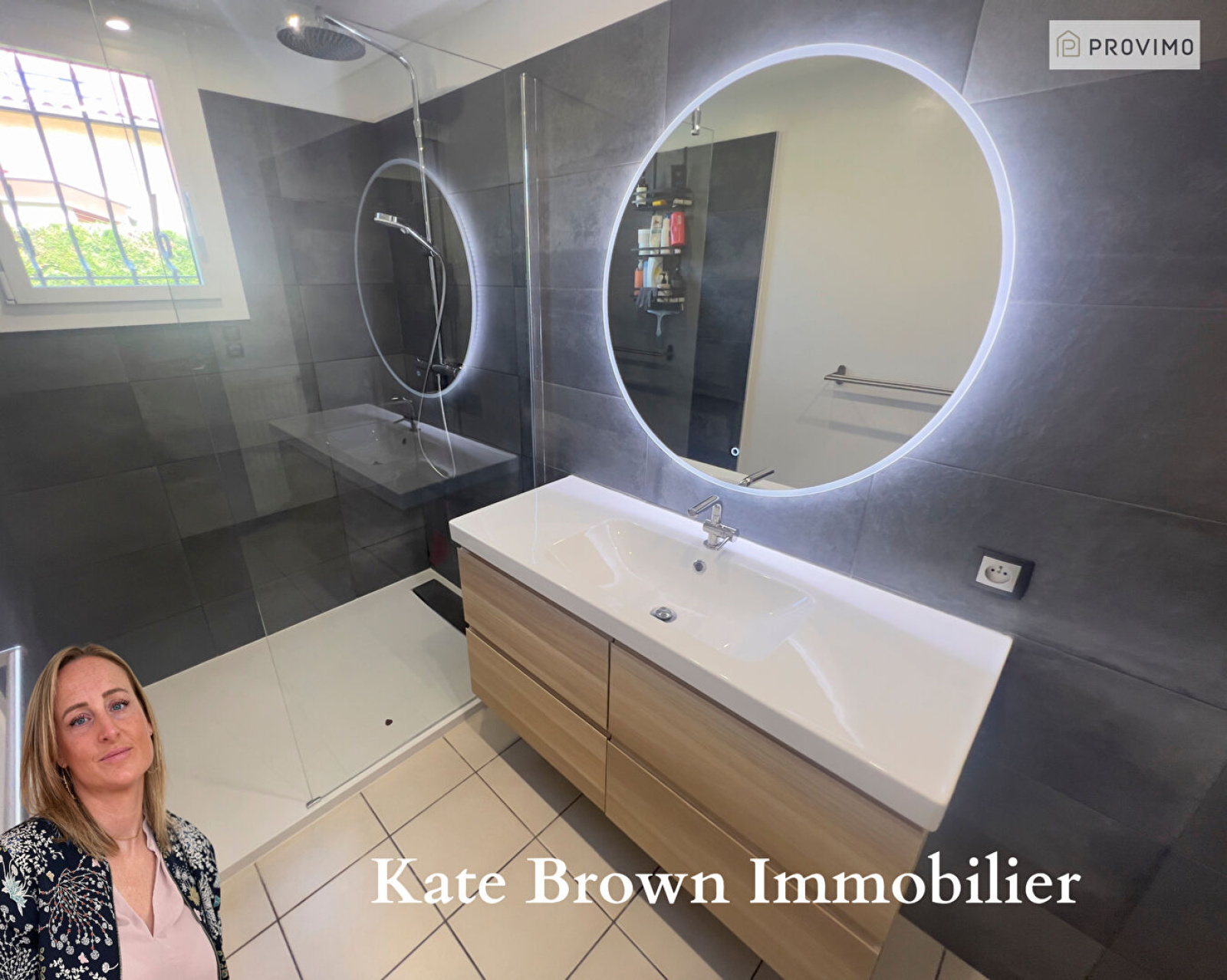 En exclusivité Kate Brown vous présente cette très belle maison très bien entretenue et rénovée de 156.24 m² habitable et le garage de 48.12 m² sur son beau terrain de 964 m² au fond d'un lotissement calme de Saint Bonnet de Mure ! Avec son accès piéton rapide au centre-ville et au groupe scolaire Vercors, la maison vous séduira par sa situation tranquille et à l'abri des regards La maison a été construite en 1994 et elle est actuellement occupée par les 2èmes propriétaires A l'étage, vous trouverez la très grande terrasse de 36 m² qui a été agrandie en 2013. L'entrée s'ouvre dans une très belle pièce de vie de 43.60 m² qui peut totalement s'ouvrir et offrir 56.29 m² en incorporant la cuisine Cette belle pièce de vie est exposée Sud-Est, offre séjour et salle à manger et s'ouvre donc sur la grande terrasse avec vue sur le jardin La cuisine de 12.69 m² est entièrement équipée de mobiliers Mobalpa de 2008 et d'électroménagers de qualité. La cuisine de belle taille est également dinatoire Au même étage, le dégagement mène au coin nuit avec ses 3 chambres, la salle de bain et les toilettes La chambre parentale est exposée Ouest, de 13.09 m² avec parquet et placard mural Les deux chambres de 12.05 et 12.40 m² sont exposées Est, avec parquet et placards muraux La salle de bain de 6.72 m² est neuve de 2022 avec grande douche de type italienne, la baignoire, le très beau meuble vasque avec rangements, la colonne et la fenêtre Les toilettes sont séparés et avec un lave-main Le rez-de-chaussée avec son hauteur de 2.25 est agréable et lumineux - c'est une véritable surface habitable et agréable Vous profiterez de la grande pièce de 18.09 m² actuellement utilisée en salle de jeux et qui peut facilement devenir une chambre avec sa belle porte-fenêtre donnant sur le jardin - exposition Ouest La chambre de 11.56 m² est exposée Est avec placard mural et elle est utilisée en bureau La salle d'eau de 4.54 m² a été entièrement rénovée en 2020 et vous offre une grande douche, la vasque avec rangements et la fenêtre La buanderie-cellier est superbe avec 12.19 m² de rangements, d'emplacements pour les machines à laver et frigo-congel Le dégagement de 7.18 m² offre du rangement et l'accès intérieur à l'étage Le garage de 48.12 m² est très grand , carrelé et profite d'une grande porte motorisée Hormann - le local séparé offre 6.56 m² Le jardin est entièrement clos par muret, grillage et portail motorisé Très spacieux, il vous offre une jolie cour, un car-port, de la verdure et un grand terrain sans vis-à-vis exposée Est-Sud-Ouest sur lequel la grande piscine a été installée en 2019 ! La piscine est au sel, de 7.60 x 4 m, 1.46 de profondeur,, sécurisé par volet électrique et avec une grande plage autour A savoir : - 2022 : Menuiseries en Alu Kline - 2022 : Rénovation de la salle de bains - 2021 : Rénovation de l'enrobé de la cour - 2020 : Rénovation salle d'eau - 2019 : Piscine Naviguo + tour piscine et aménagement - 2013 : Chéneaux et bandeaux en PVC blanc - 2013 : Agrandissement de la terrasse - 2012 : Portail en acier et motorisation - 2010 : Volets battants en alu - 2008 : VMC hygro - 2008 : Chaudière au gaz de ville Frisquet pour le chauffage et l'eau chaude - 2008 : porte de garage et motorisation Hormann - DPE en C et GES en C - aucun défaut électrique - aucun défaut diag gaz - Taxe foncière 1491 € Vous cherchez une belle maison agréable sans travaux et au calme? Contactez moi au O6 32 90 30 94 A très vite, Kate