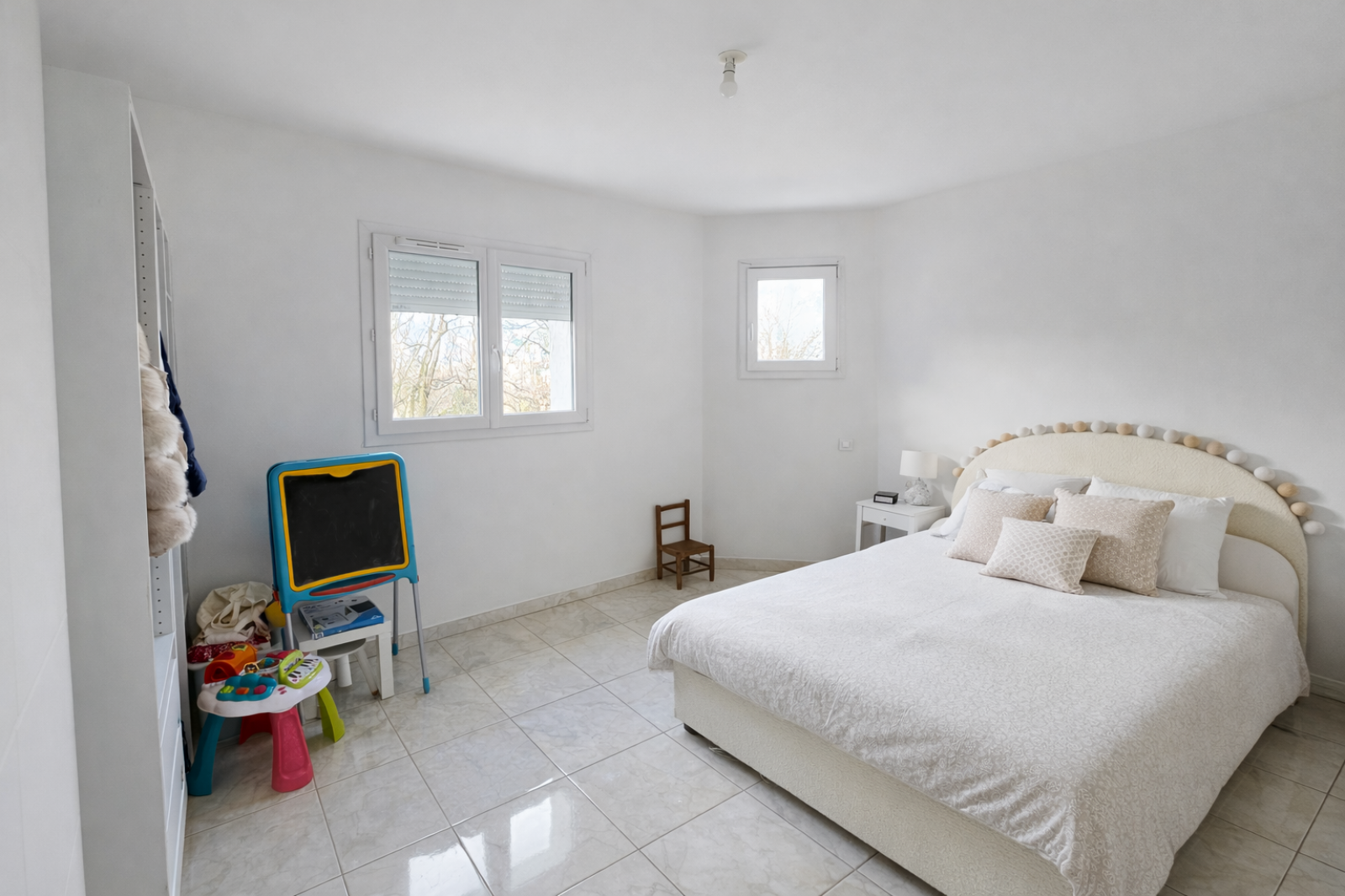 Elle offre au rez de chaussée 1 suite parentale avec salle d'eau privée, grand dressing et 3 grandes chambres à l'étage de 14,11 et 12m2 avec salle de bain.