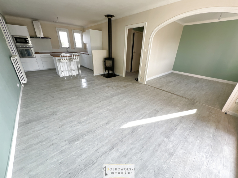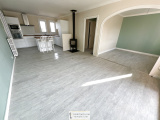 La maison ets composée d'une cuisine aménagée et équipée ouverte sur un salon/séjour de 38m2 et donnant accès à une véranda de 16m2, d'une salle de bains rénovée et d'un WC également rénové, de 2 chambres et d'un bureau.