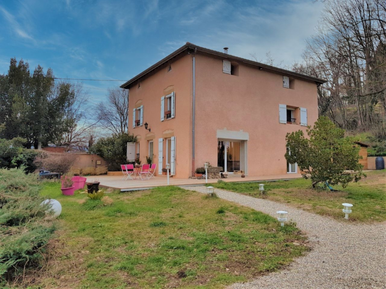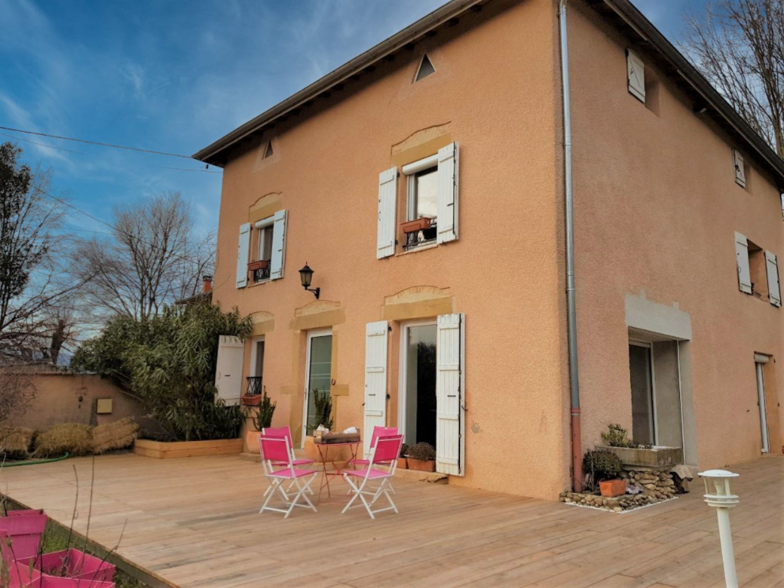 Maison de caractère de 1800 avec des prestations haut de gamme d'environ 240m2 entièrement rénovée avec beaucoup de charme sur un terrain d'1 Hectare et 1393m2 avec Box à chevaux + dépendances et garage, située à 18 mn de Vienne sur le côteau de Roussillon et à 2 kms d'une gare, à proximité de toutes les commodités. Elle offre au RDC une salle d'eau moderne et toilettes, une Pièce à vivre de 65m2 avec cuisine à l'Américaine entièrement équipée, de grandes baies vitrées à galandage permettant de communiquer avec la nature verdoyante, un poêle à bois amenant une ambiance chaleureuse et une douceur de vie. Au niveau supérieur : 3 chambres de 18 à 20m2 + 1 suite parentale de 40m2 , 2 salles de bains modernes...et une pièce avec grand vélux de 40m2 pour chambre où salon cinéma - salle de jeux.... Maison de 1800 d'environ 240m2 sur un terrain d'1 Hectare et 1393m2 avec box à chevaux comprenant : 5 chambres de 18 à 40m2 + 3 salles de bain et 2 toilettes Pièce à vivre de 65m2 avec cuisine à l'Américaine entièrement équipée Menuiseries double vitrage avec volets roulants électriques Chauffage centrale au fuel - conso 1500L/an + poêle à bois Tout à l'Egout Garage d'environ 20m2 Poulailler 10m2 4 Box à chevaux (2 refaits + 2 box à refaire) Portail automatisé (Isolation laine de verre - moins de 10 ans)
