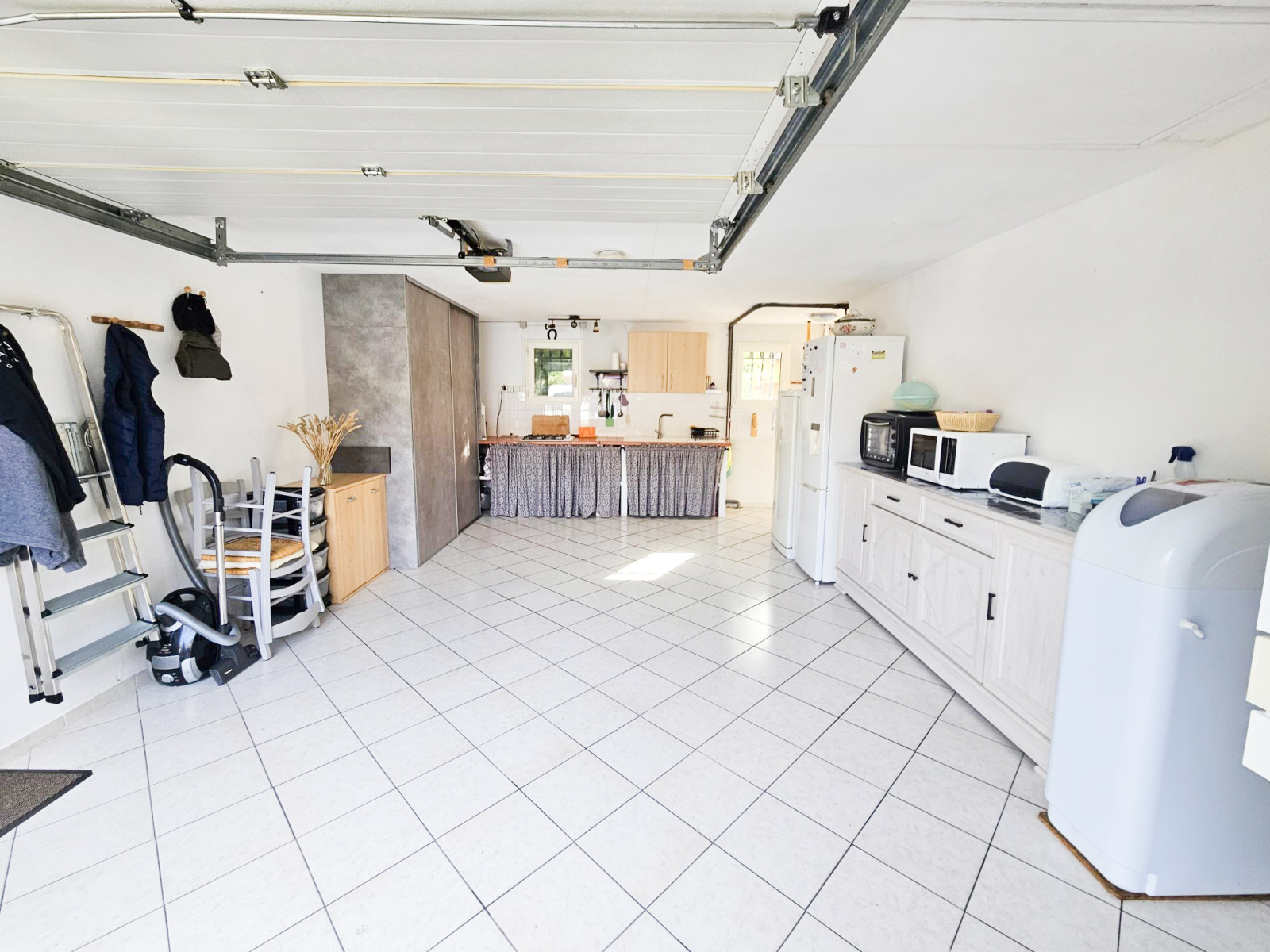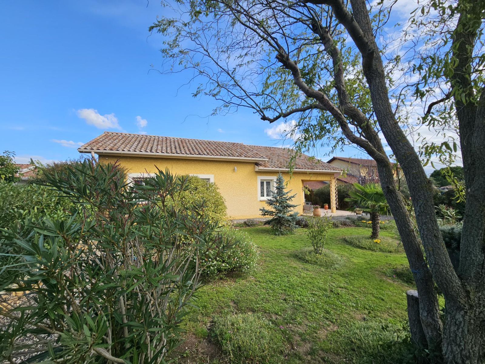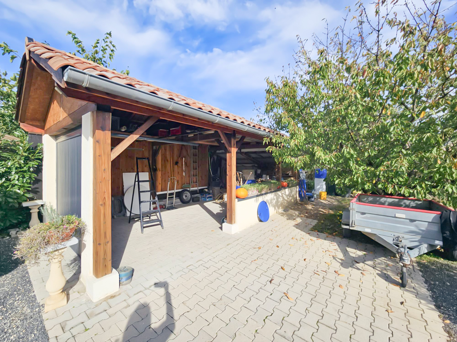 EN EXCLUSIVITE - Maison plain pied pleine de charme de 123m2 sur un terrain de 1027m2 arboré et joliment paysagé dans un quartier résidentiel recherché calme et agréable à vivre, dont un garage de 30 m2 carrelé et isolé avec buanderie + un atelier d'environ 12m2 et un abri voiture de 19m2 avec porte.