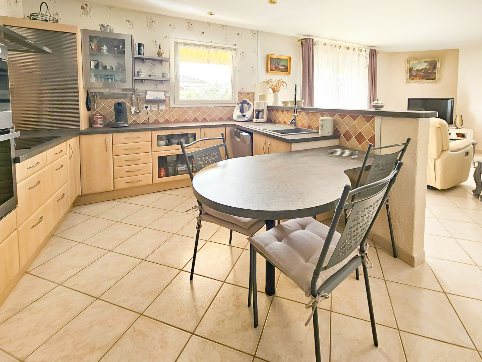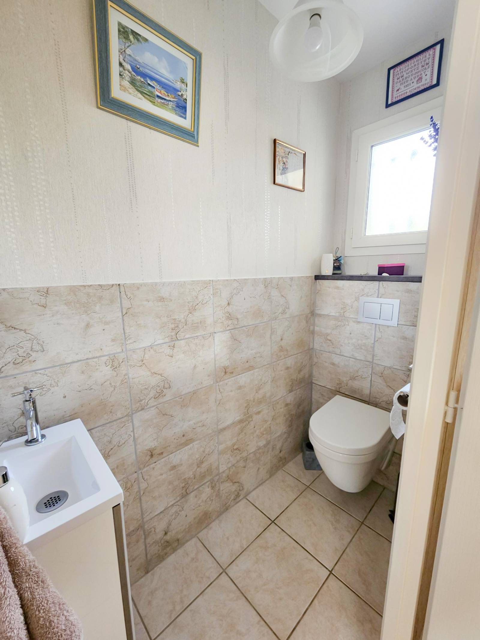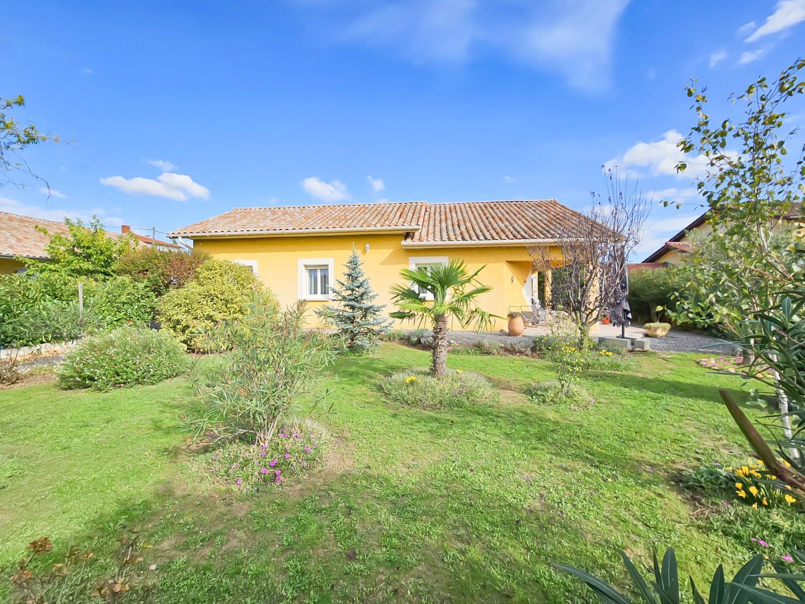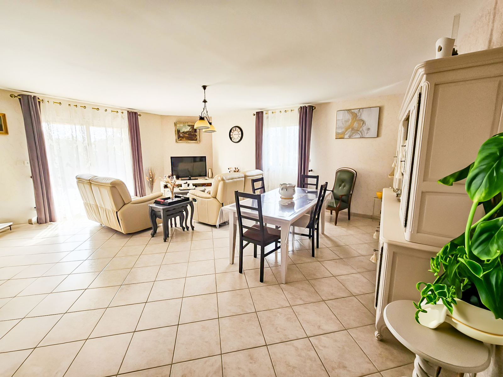 EN EXCLUSIVITE - Maison plain pied pleine de charme de 123m2 sur un terrain de 1027m2 arboré et joliment paysagé dans un quartier résidentiel recherché calme et agréable à vivre, dont un garage de 30 m2 carrelé et isolé avec buanderie + un atelier d'environ 12m2 et un abri voiture de 19m2 avec porte.