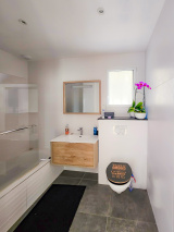 Egalement une arrière cuisine et un double garage de 50m2 + une dépendance de 24m2.