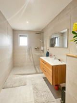 Elle offre 4 ou 5 chambres dont 1 suite parentale au RDC de 47m2 avec salle d'eau et dressing, une 2ème suite de 20m2 avec salle d'eau et dressing + 2 autres chambres de 17m2 avec une salle d'eau indépendante, dressing dans chaque chambre, également un bureau de 9.5m2 et un salon de 39m2 pour se détendre avec un coin bibliothèque.