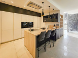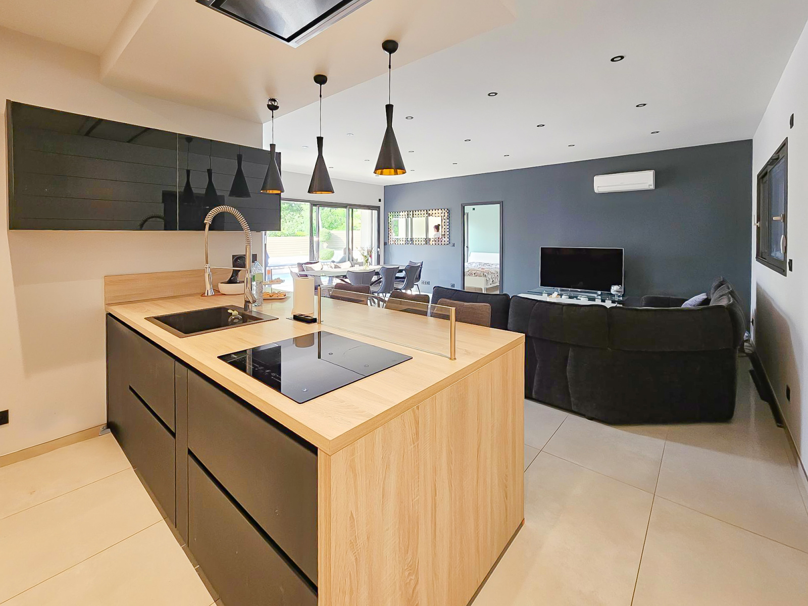 Une pièce à vivre de 52m2 lumineuse et agréable avec cuisine américaine entièrement équipée avec du mobilier de qualité, agrémentée d'un cellier-buanderie.