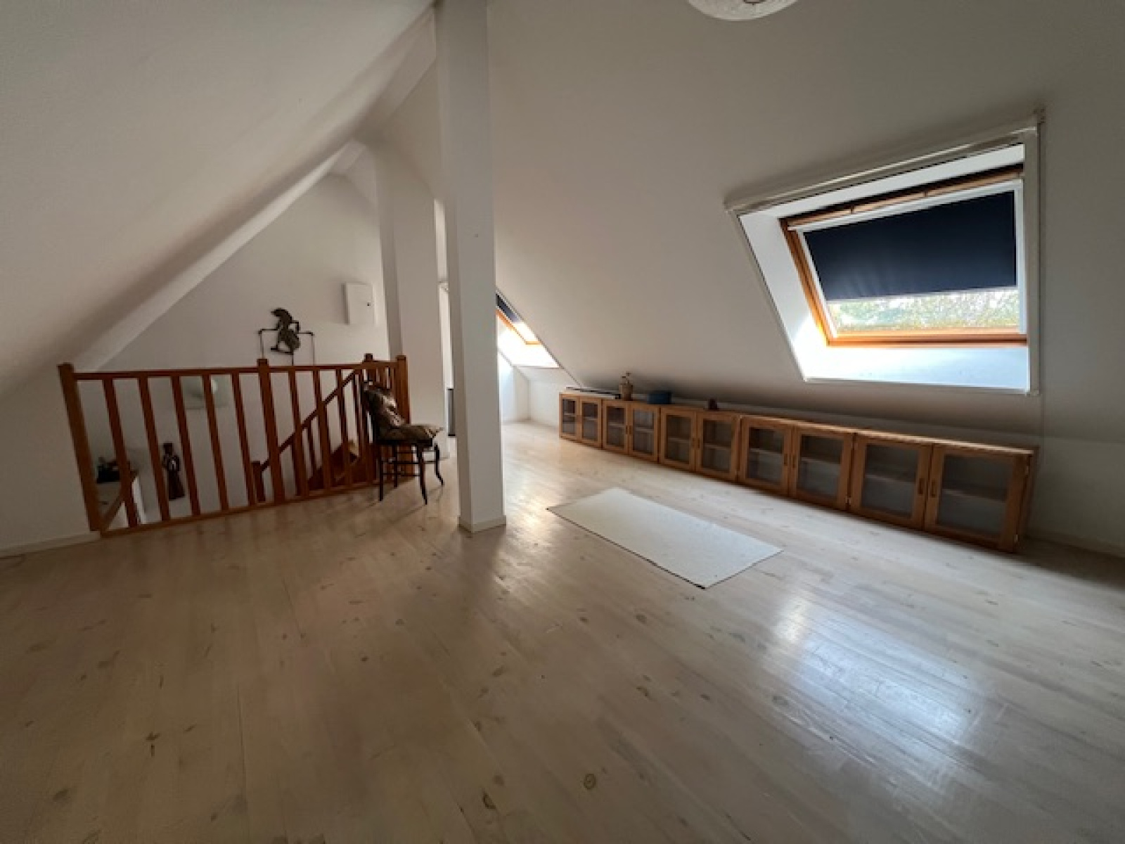 L'étage se compose de 3 chambres, un palier et une grande salle de bains avec baignoire, douche et WC. Le deuxième étage avec une grande chambre de 14,50 m².