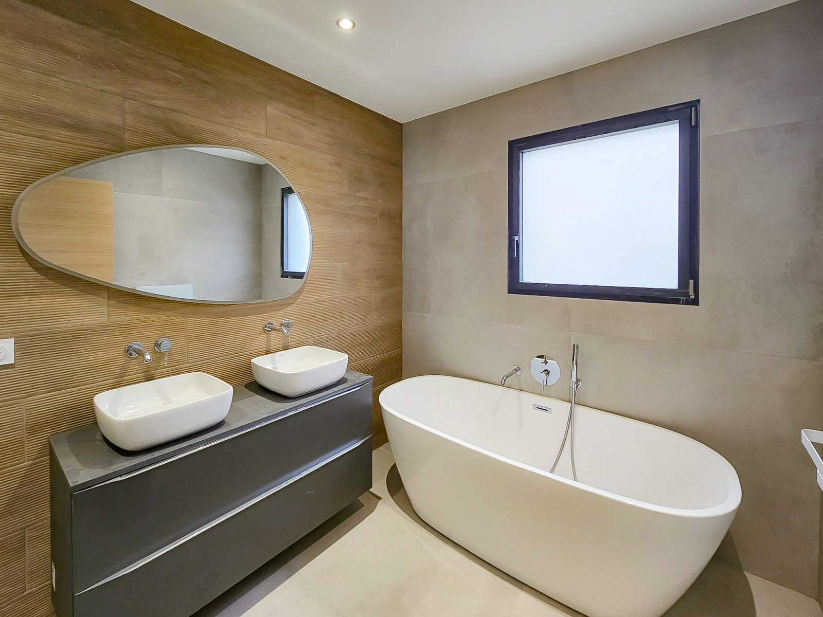 EN EXCLUSIVITE - Maison contemporaine haut de gamme en cours de finition située dans un quartier résidentiel, neuve avec des prestations de qualité de 140m2 sur un terrain payasagé avec palmiers et oliviers.
