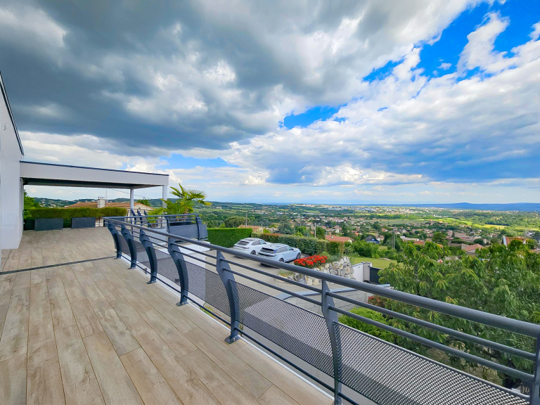 EN EXCLUSIVITE - Maison contemporaine d'exception de 250m2+ sous-sol d'environ 100m2 sur un terrain de 1674 m2 sur les hauteurs avec une vue panoramique à couper le souffle sur toute la vallée jusqu'au Mont Blanc, une décoration raffinée et stylée avec un intérieur lumineux et agréable à vivre.