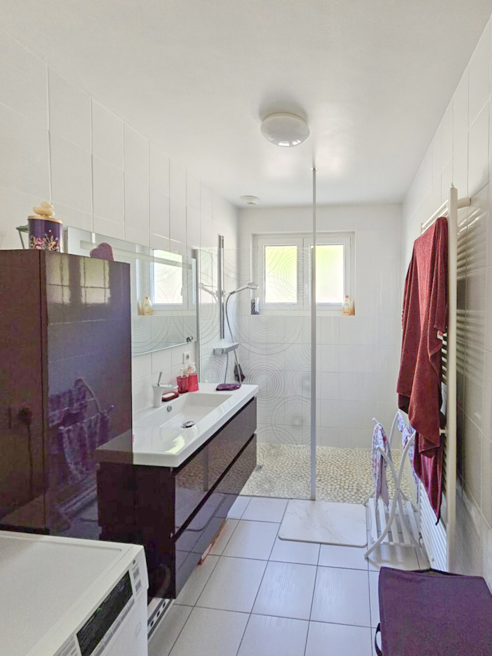 Elle offre 3 chambres de 2X11m2 + une de 14m2, une salle d'eau moderne, une pièce à vivre de 40m2 pleine de charme avec un beau parquet et une cuisine entièrement équipée moderne, également une véranda d'environ 9m2 et une terrasse.