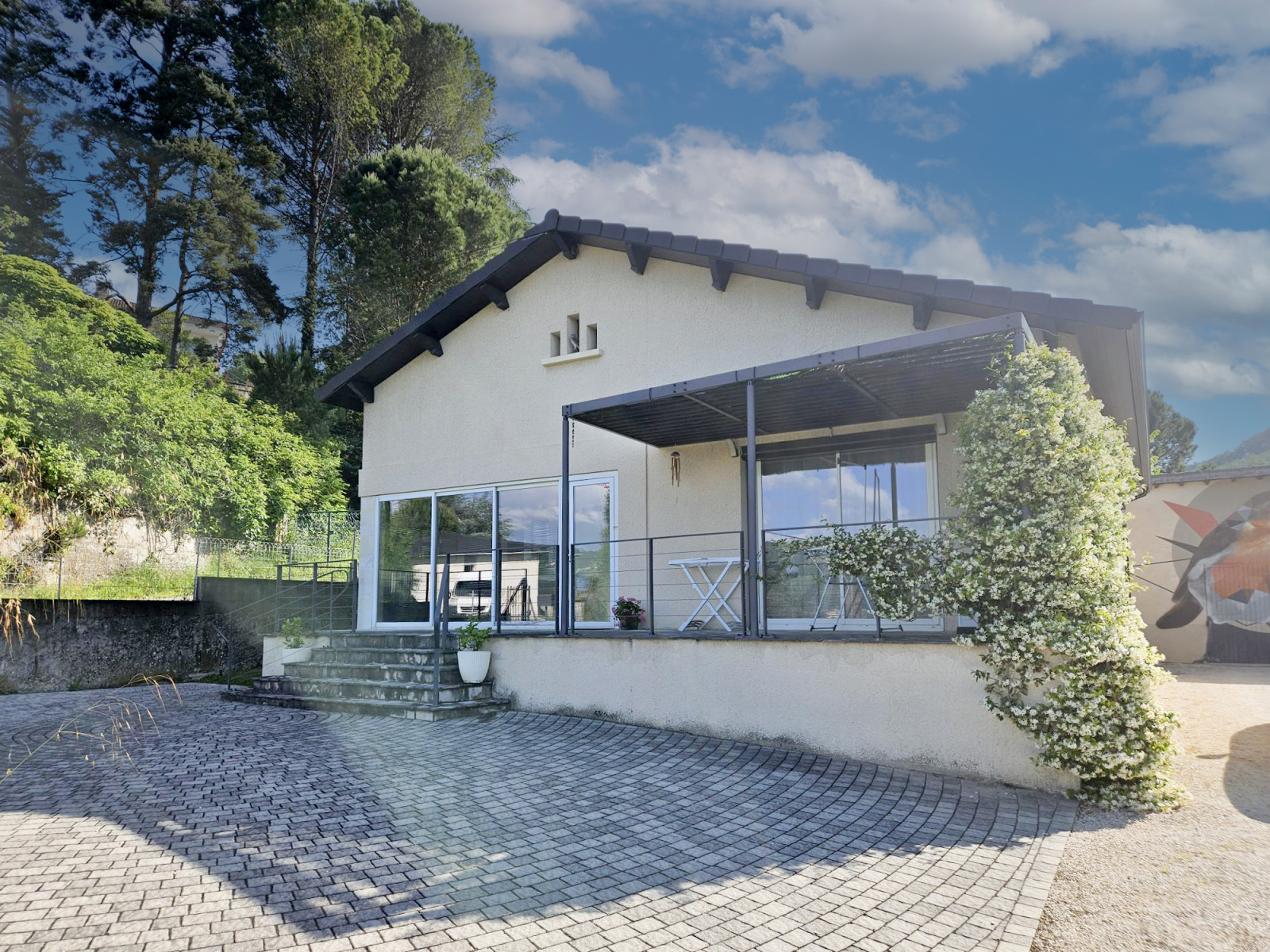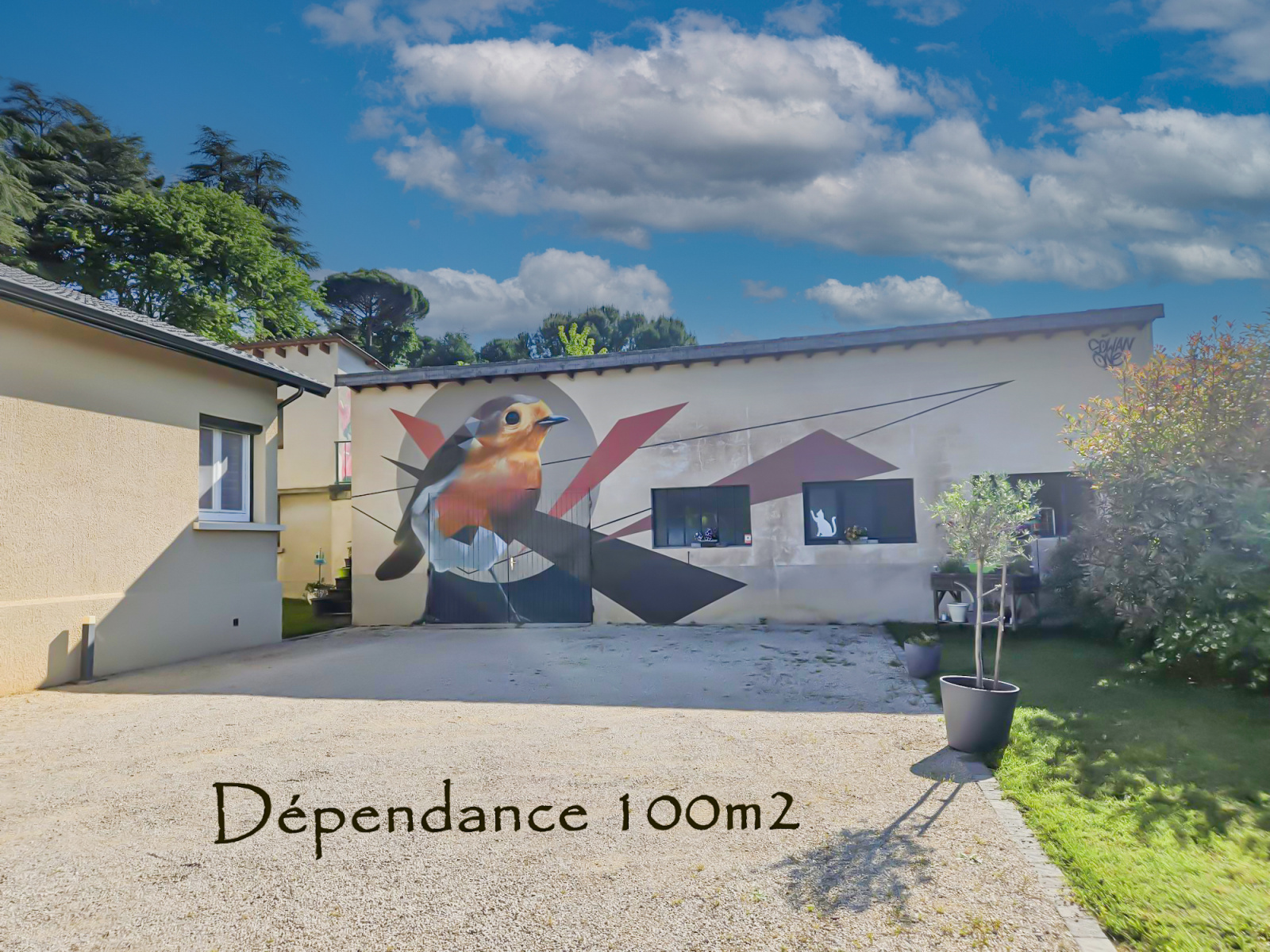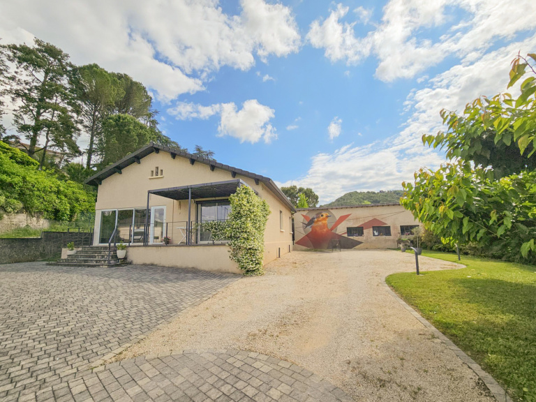 SOUS COMPROMIS - EN EXCLUSIVITE - Maison entièrement rénovée de 2015 à 2023 plain pied avec de belles prestations, climatisation réversible avec pompe à chaleur, volets roulants solaires,.... avec une vue exceptionnelle sur le Rhône, un garage de 100m2 + un petit bâtiment de 75m2 avec cave + chaufferie et à l'étage une pièce de 25m2 avec terrasse (idéale pour créer une chambre d'amis, bureau indépendant ou studio) située sur un terrain entièrement constructible de 1866m2 (pouvant être divisé pour une autre construction).