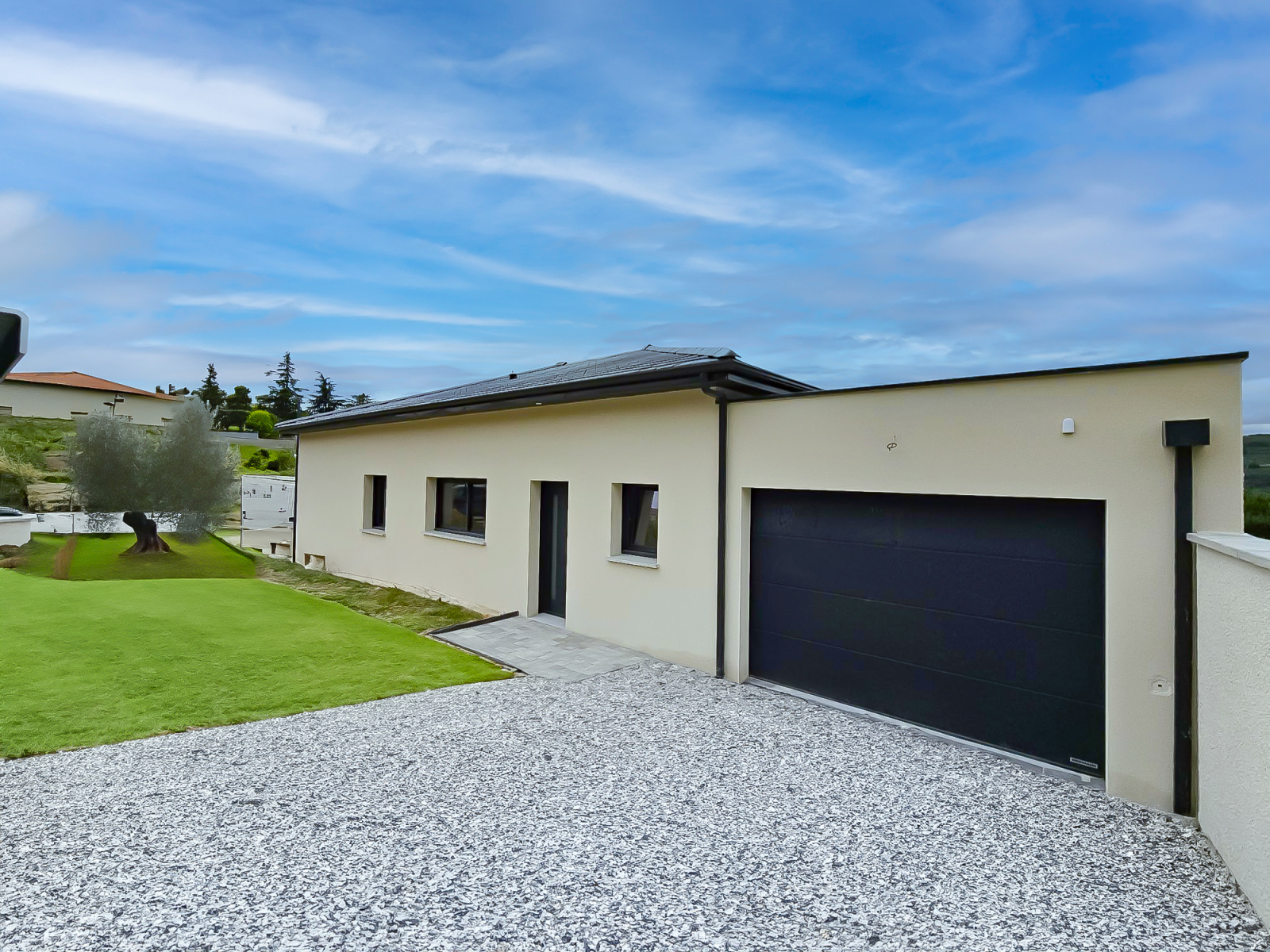 SOUS COMPROMIS - EN EXCLUSIVITE - Maison plain pied de 126m2 contemporaine dont un garage de 26 m2 carrelé sur un terrain de 794m2 avec une jolie vue, livrée clé en main en Mai/Juin 2025, avec prestations actuelles.