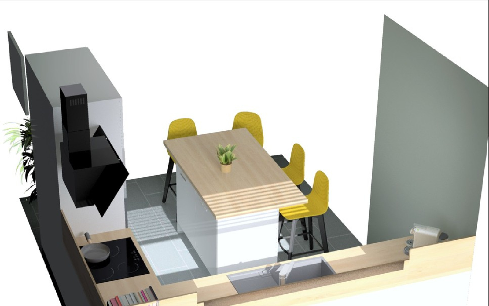 Une grande pièce à vivre de 50 m2 avec cuisine américaine entièrement équipée.