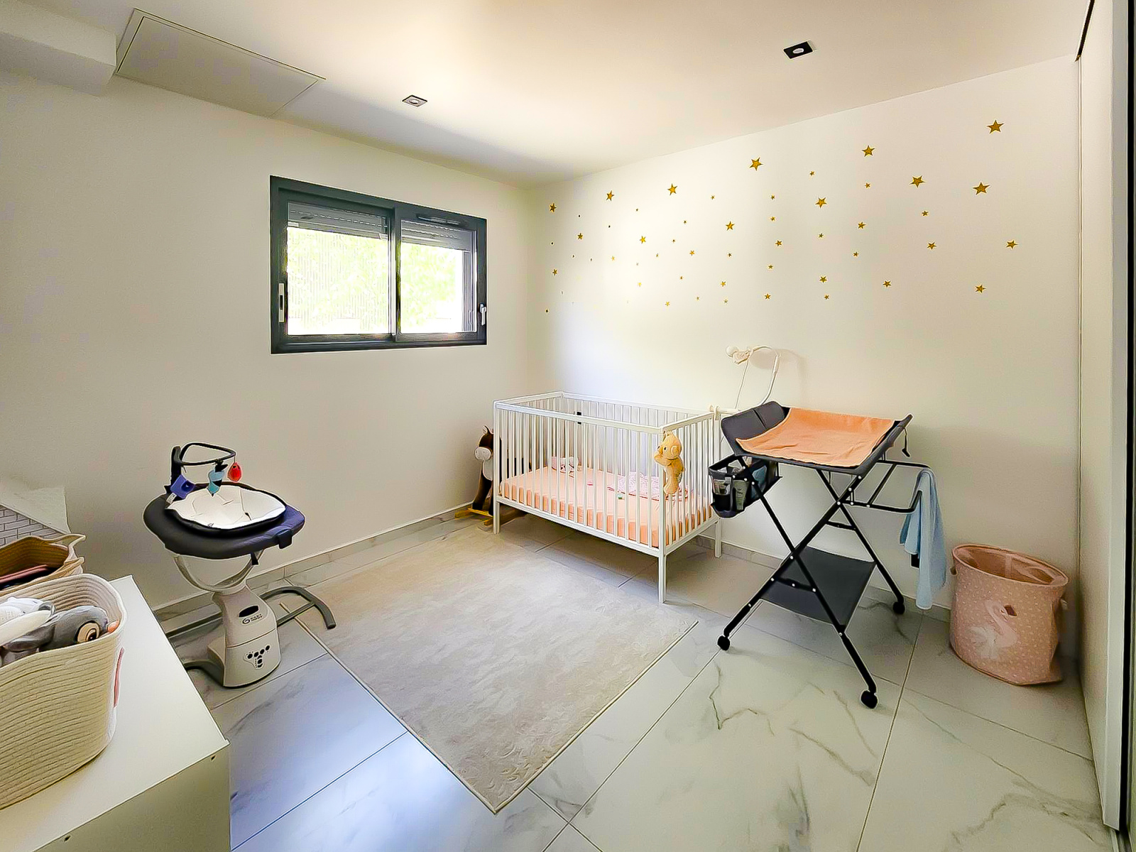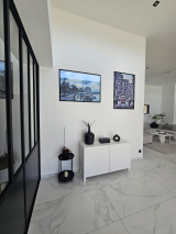 EN EXCLUSIVITE - Maison contemporaine plain pied, élégante et raffinée avec de beaux volumes et des prestations haut de gamme, de 160m2 + un garage carrelé et isolé de 31m2 sur un terrain entièrement paysagé de 673m2 agrémenté d'une piscine 6X3m avec volet de sécurité électrique.