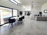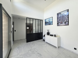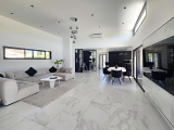 Une pièce à vivre de 82m2 majestueuse avec une belle hauteur de plafond de 4 mètres, cuisine américaine entièrement équipée, de grandes baies s'ouvrant sur une terrasse d'environ 100m2 avec vue sur la piscine.