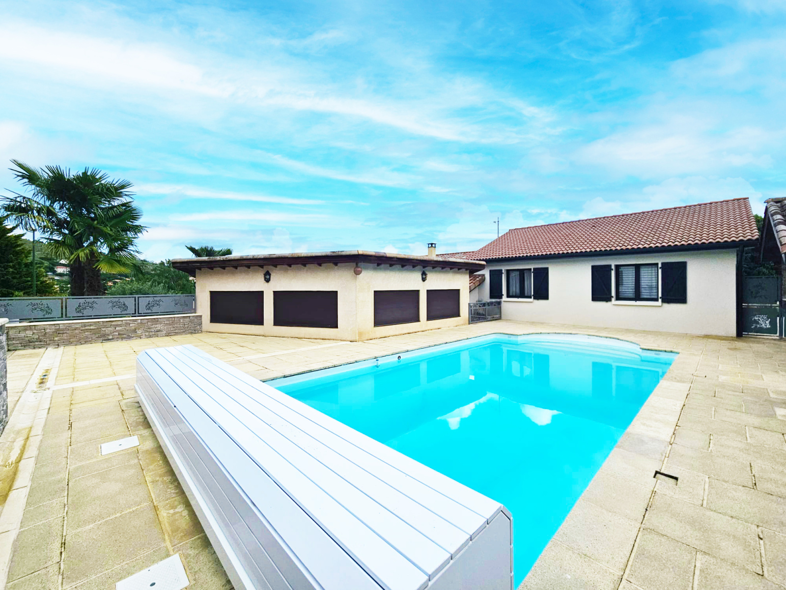 Grande maison familiale de 158m2 sur un terrain de 1137m2 entièrement paysagé avec arrosage automatique, agrémenté d'une belle piscine sécurisée avec son poolhouse d'environ 40m2 aménagé en cuisine d'été et salon sur une terrasse d'env. 100m2.
