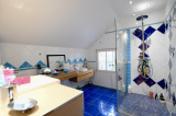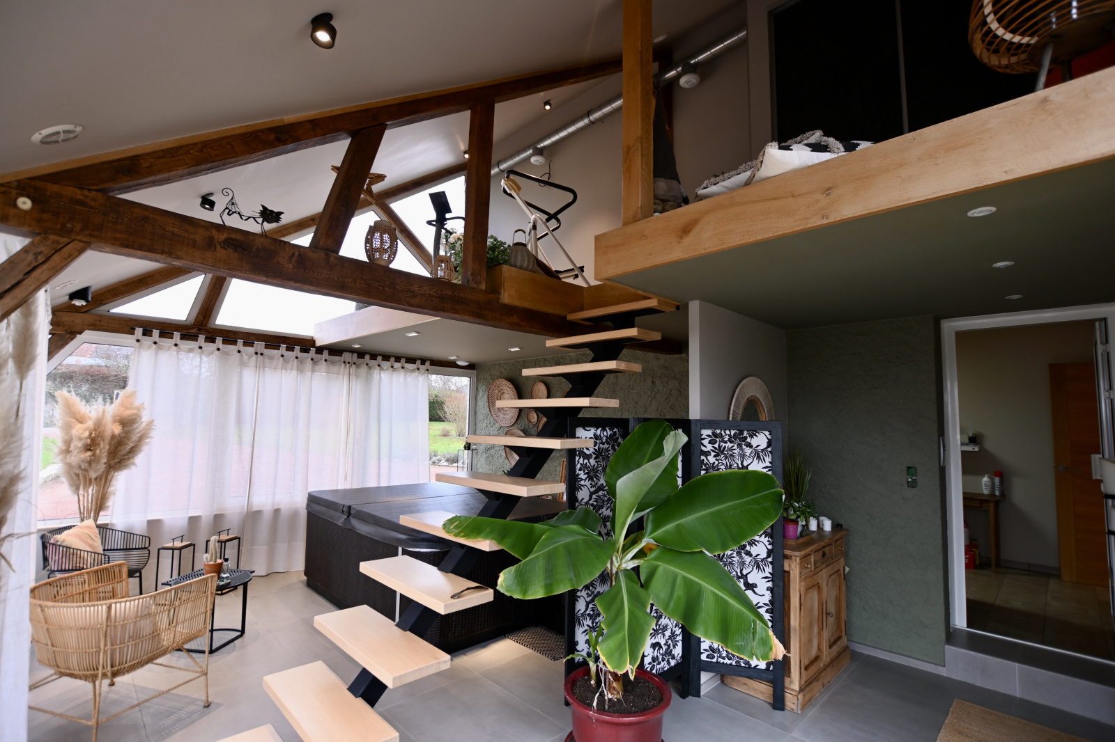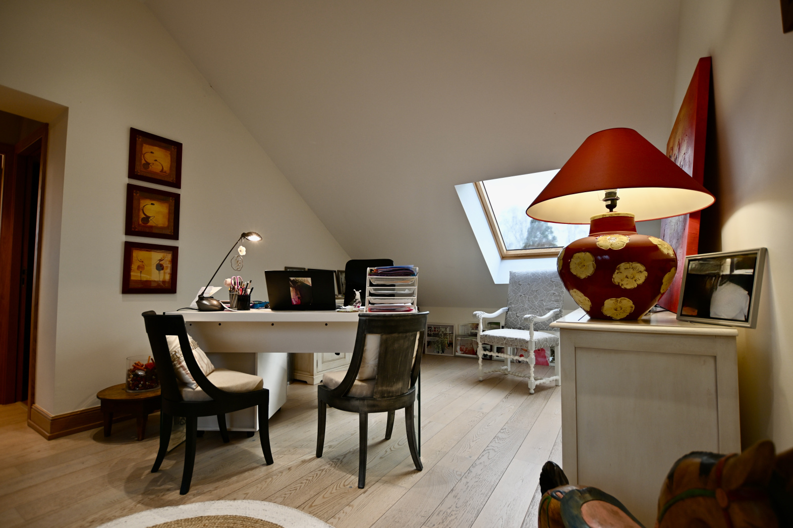Le rez-de-chaussée accueille également une suite parentale avec dressing et salle de bains privative, une chambre, un WC indépendant, une buanderie ainsi qu’un espace bien-être comprenant une salle de spa et une salle de sport en mezzanine.À l’étage, un grand palier pouvant faire office de bureau dessert une salle d’eau, un WC, une chambre d’enfant et deux chambres avec mezzanine. Un grenier aménageable complète l’ensemble.