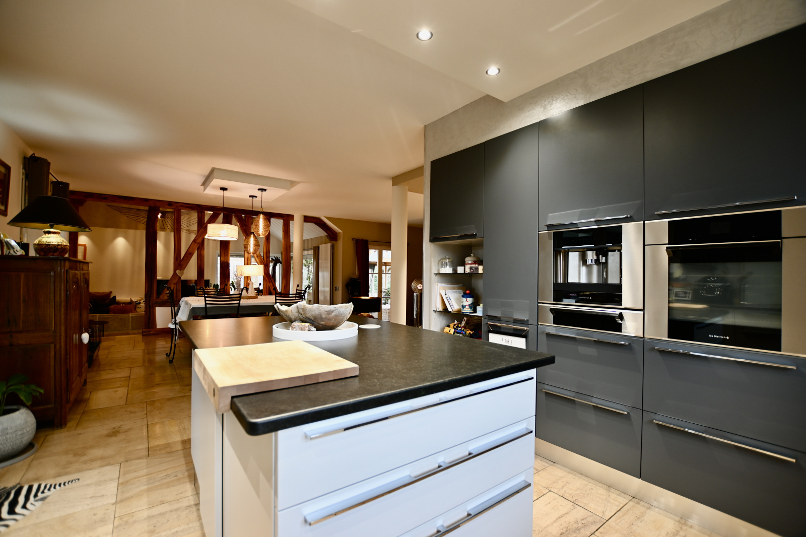 Dès l’entrée, les volumes généreux et la luminosité créent une atmosphère chaleureuse. La cuisine équipée, ouverte sur la salle à manger, constitue un véritable cœur de vie, idéal pour les moments partagés en famille. Deux salons complètent les espaces de réception, dont un vaste séjour sublimé par de larges baies vitrées et un dôme vitré apportant une lumière naturelle remarquable. Une cuisine d’été prolonge ces espaces vers l’extérieur et invite à profiter pleinement des beaux jours.