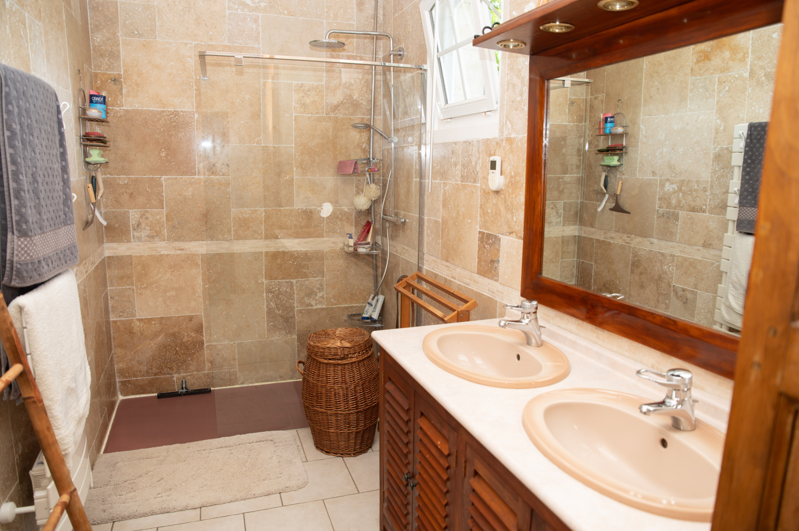 A l'extérieur, vous profiterez, d'un joli parc arboré et entièrement clôturé (grillage inox) de plus de 3 000 m², d'une piscine (alimentée par un puits) et abritée par un dôme.