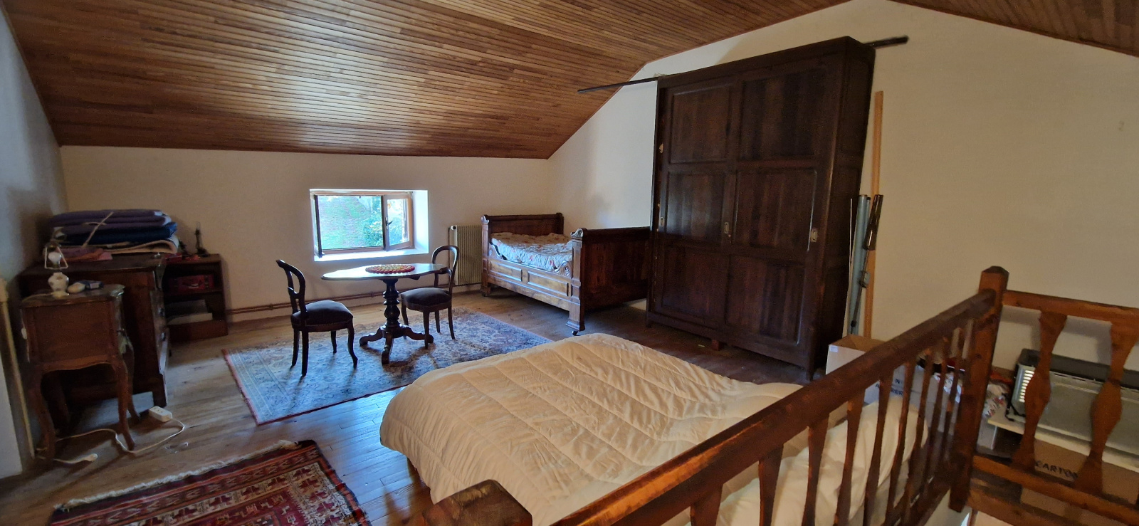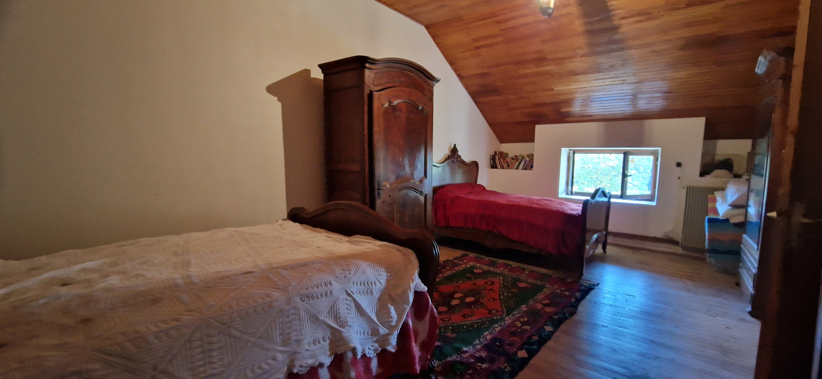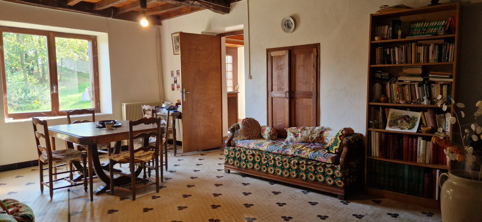 Descriptif actuel du bien: au rdc, vous trouverez un salon avec cheminée de 26.30 m2, un séjour de 24 m2, une cuisine de 24 m2, une salle de bain de 10 m2 et à l'étage, une chambre de 28 m2, une autre chambre de 23 m2 et le volume de 32 m2 au-dessus de la cuisine à exploiter.