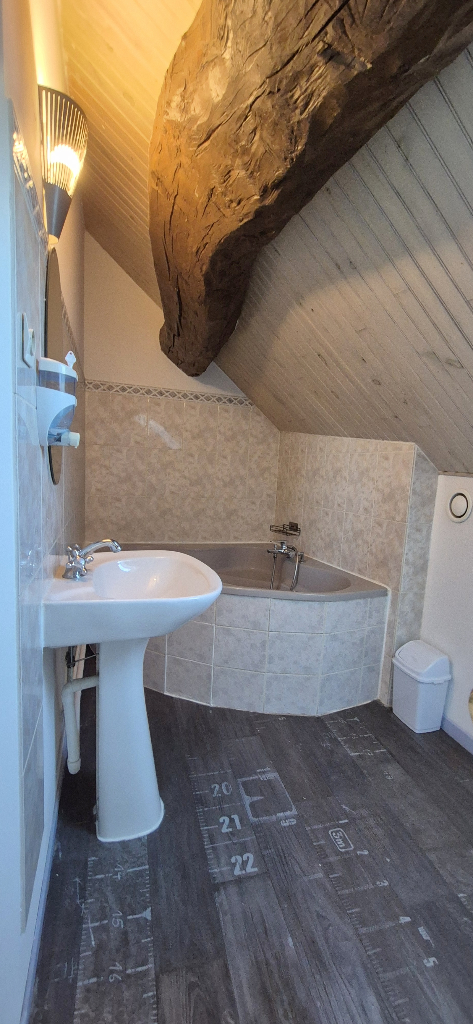 Au dernier niveau, le palier dessert deux chambres mansardées (10,20 m² et 12,40 m² au sol), une salle de bain ainsi qu’un toilette indépendant, l’ensemble est en très bon état général.
