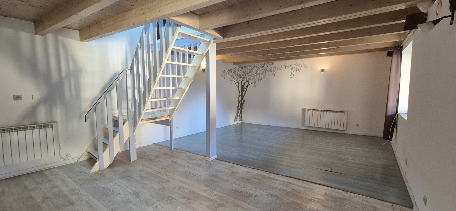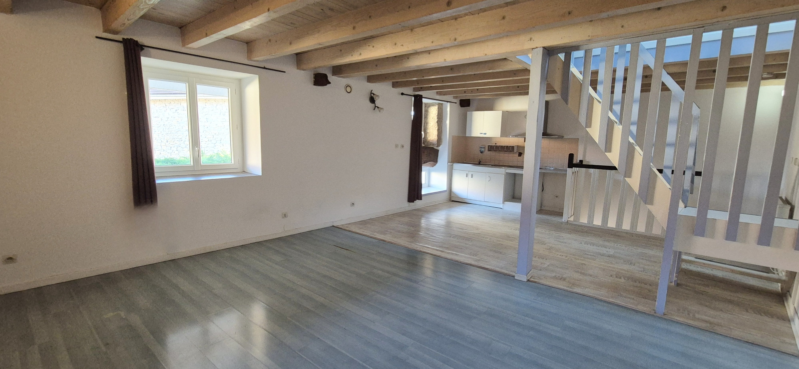 À l’étage, la pièce de vie d’environ 31 m² séduit par son bel espace lumineux et convivial. Cet espace unique, regroupant salon, salle à manger et cuisine ouverte, constitue un véritable lieu de partage. Le charme de la pierre et les volumes bien pensés offrent une atmosphère chaleureuse et accueillante, idéale pour un jeune couple ou un premier achat.