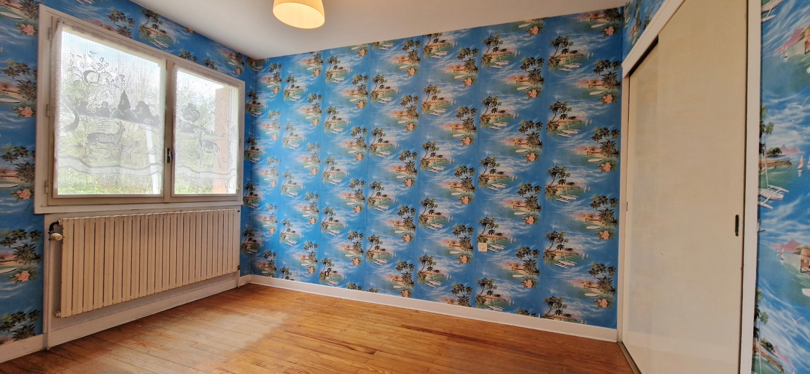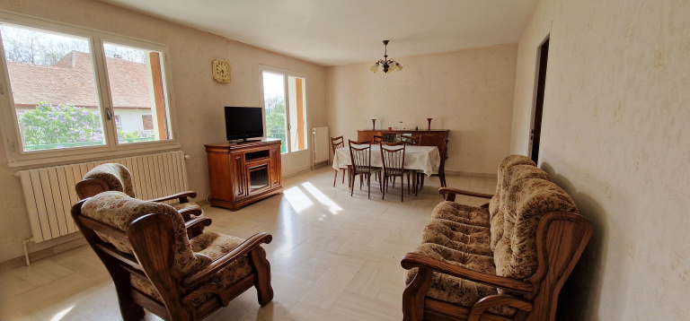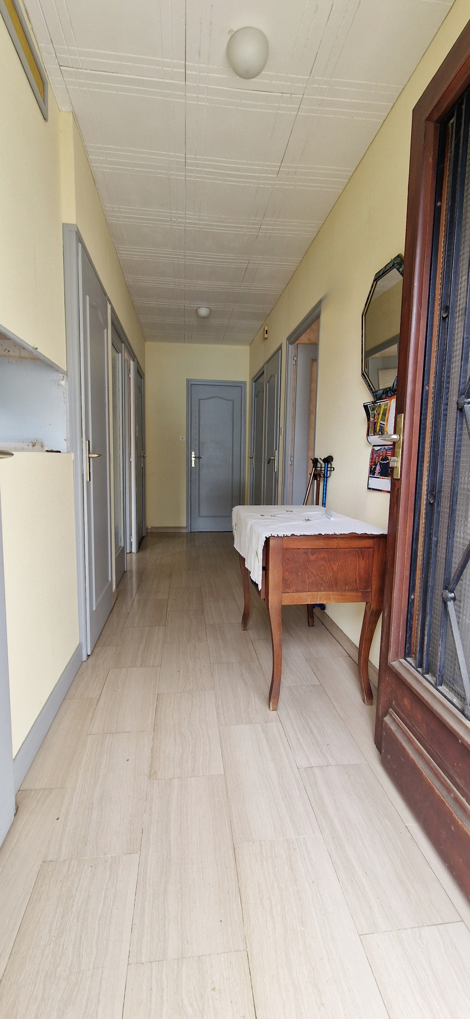 La maison possède deux entrées qui permettent de modifier la distribution intérieure qui est actuellement composée comme ce qui suit : un salon séjour de 28 m2, une cuisine de 11 m2, 3 chambres de 11 à 12.50 m2, une salle de bain, une salle d'eau, un grand hall d'entrée de 12.40 m2 pouvant devenir une chambre.